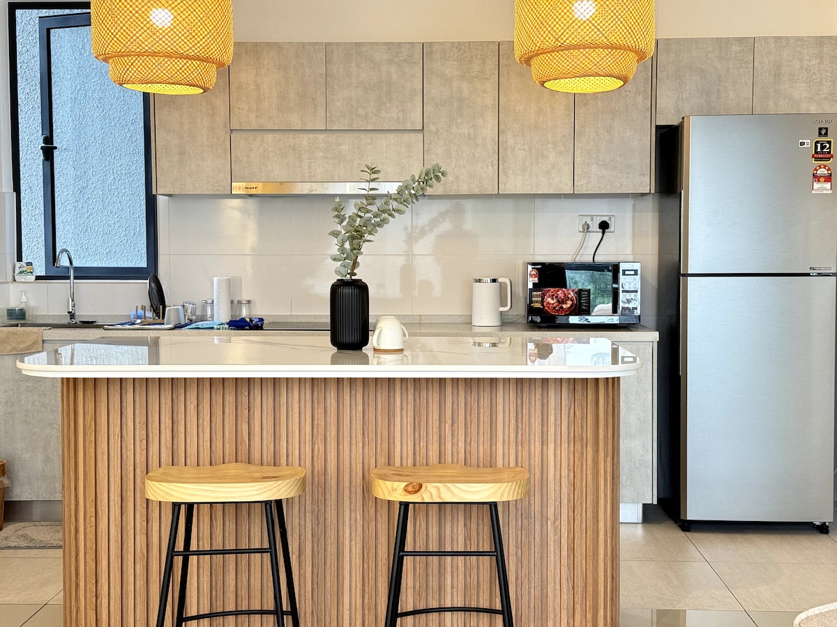 Բարի գալուստ Քաջանգում գտնվող ձեր հարմարավետ տուն ։ Մեր ժամանակակից 2BR հարկաբաժինը նախագծված է յուրահատուկ կղզու սեղանով, պայծառ բաց հատակագծով և լողավազանի գեղեցիկ տեսարանով, որը հանգստավայրի նման երանգ է հաղորդում ձեր այցին: Հեշտ մուտք դեպի մոտակա գնումների վայրեր և տրանսպորտային հղումներ, որոնք կատարյալ են կարճատև հանգստի, ընտանեկան ժամանակի կամ նույնիսկ ավելի երկար այցի համար ։ Եկեք տուն ՝ հանգստանալու հրապուրիչ բնակելի տարածքում, պարզ կերակուր պատրաստեք լավ կահավորված խոհանոցում կամ լիցքաթափվեք լողավազանի մոտ ։ Մենք ստեղծել ենք այս տարածքը ՝ ջերմ և հյուրընկալ զգալու համար ։