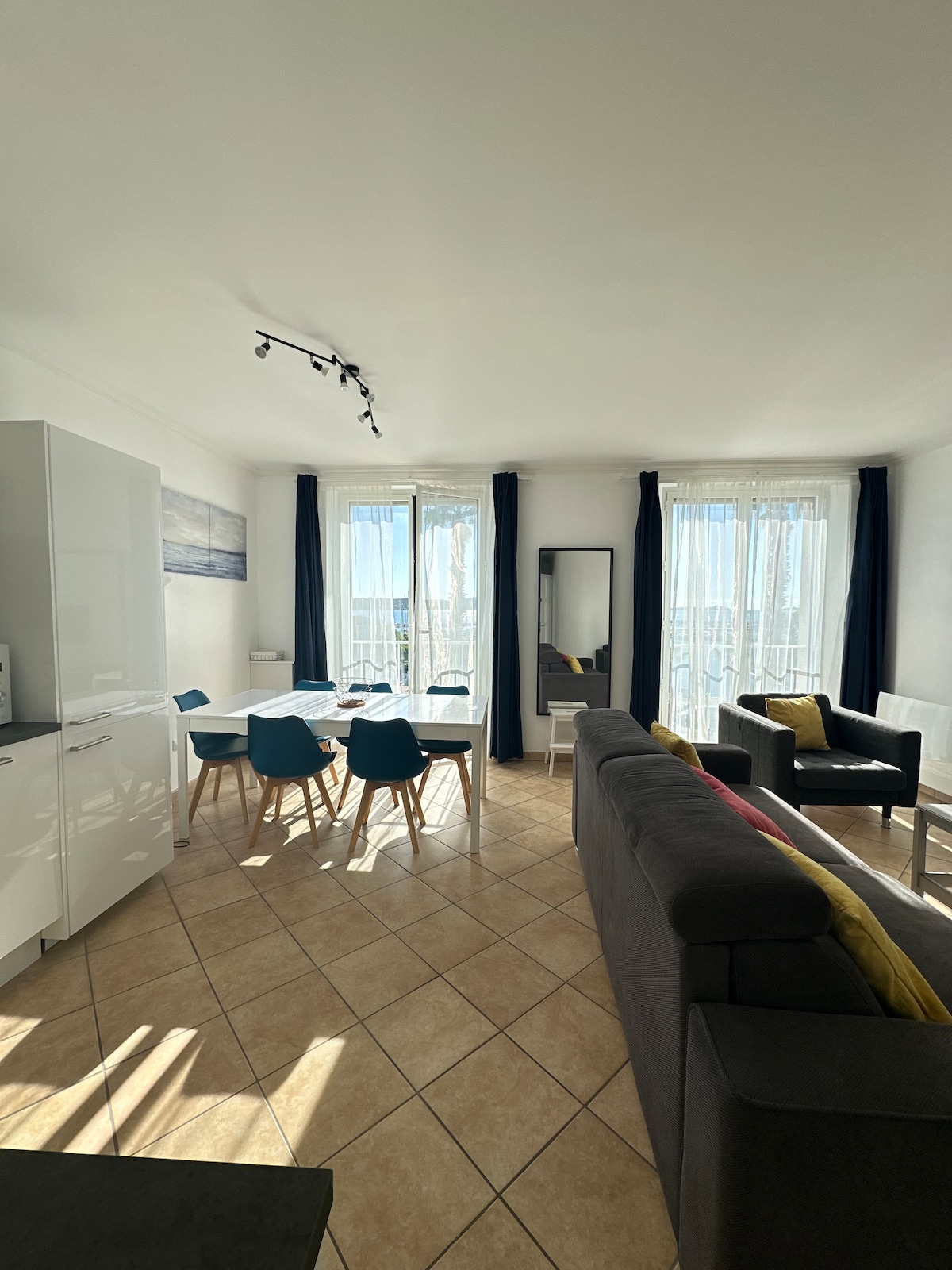 Արևոտ բնակարան ՝ նավահանգստում, տեսարան դեպի ծով, կայանատեղի