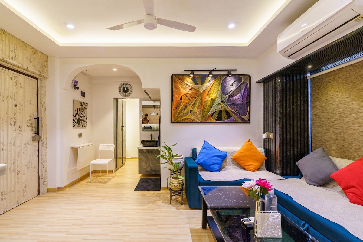 Boho Chic - ի առաջին հարկը ճաշակով համադրված 2BK հանգստի վայր է բարձրակարգ SantaCruz West - ում ։ Մենք մի քանի քայլ հեռու ենք ՍՆՆԴԻ ՀՐԱՊԱՐԱԿԻՑ, Linking Rd - ից, Սանտակրուզ կայարանից 10 րոպե հեռավորության վրա և շքեղ սրճարաններին ու բուտիկներին մոտ: Ընդամենը 15 րոպե մինչև օդանավակայան և BKC ։ Իդեալական է հարմարավետություն, ոճ և գտնվելու վայր փնտրող ընտանիքների, զույգերի կամ բիզնես ուղևորների համար ։ Անկախ այն բանից ՝ քաղաքում եք աշխատանքային ուղևորության, գնումների կամ պարզապես հանգիստ հանգստի համար, այս բնակարանն առաջարկում է տան հարմարավետություն և ձեզ անհրաժեշտ գտնվելու վայրը ։ Անհամբեր սպասում ենք ձեր հյուրընկալմանը ։