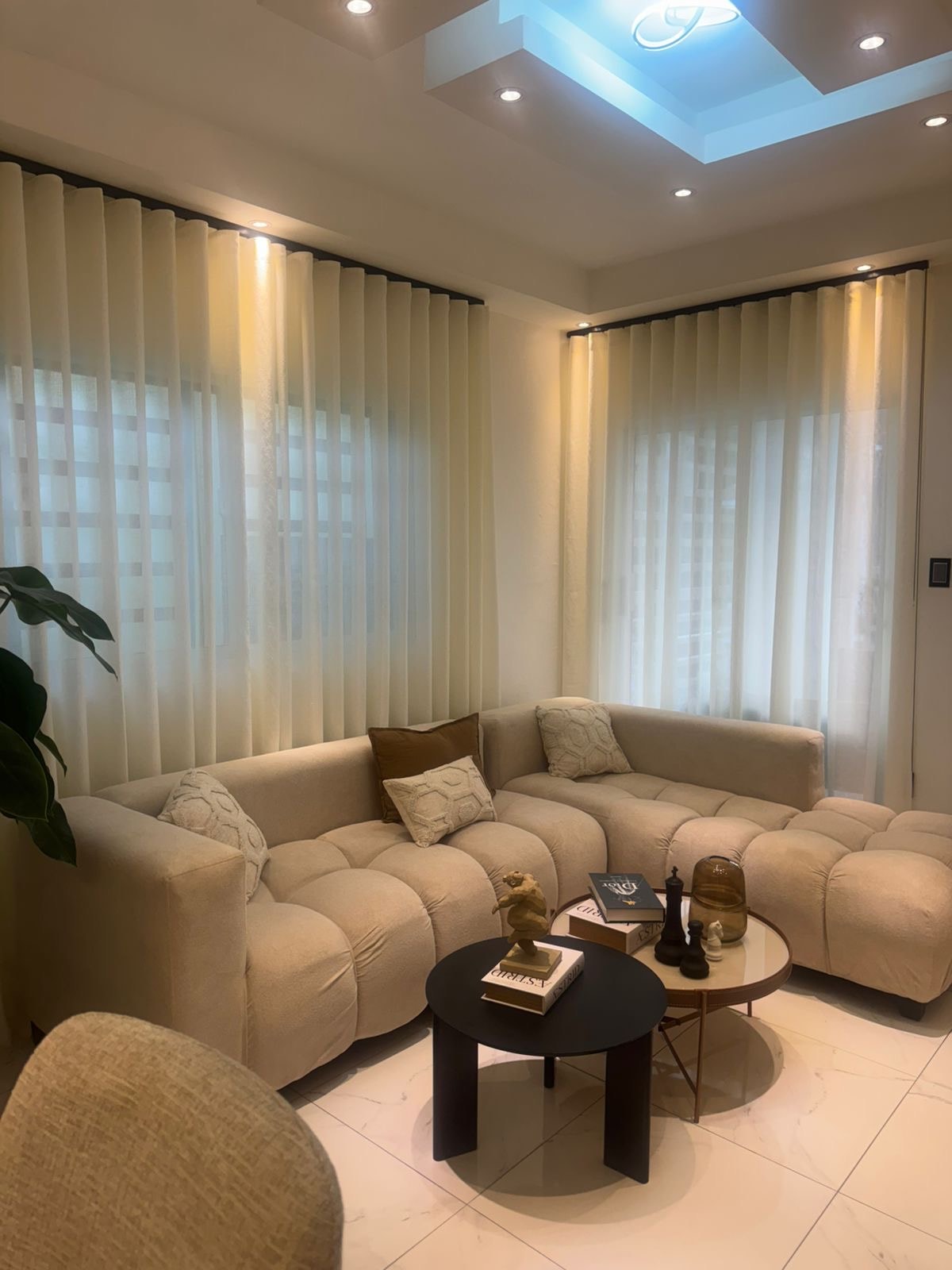 Welcome to this brand new, gorgeous 1st floor apartment located in Bani close to the center of the city and its surroundings. This charming living space has everything to make you and your family feel at home: 3 bedrooms, Queen beds , twin beds, AC in every room, TVs, 2 Bathrooms, washer & dryer, and a well equipped kitchen.
