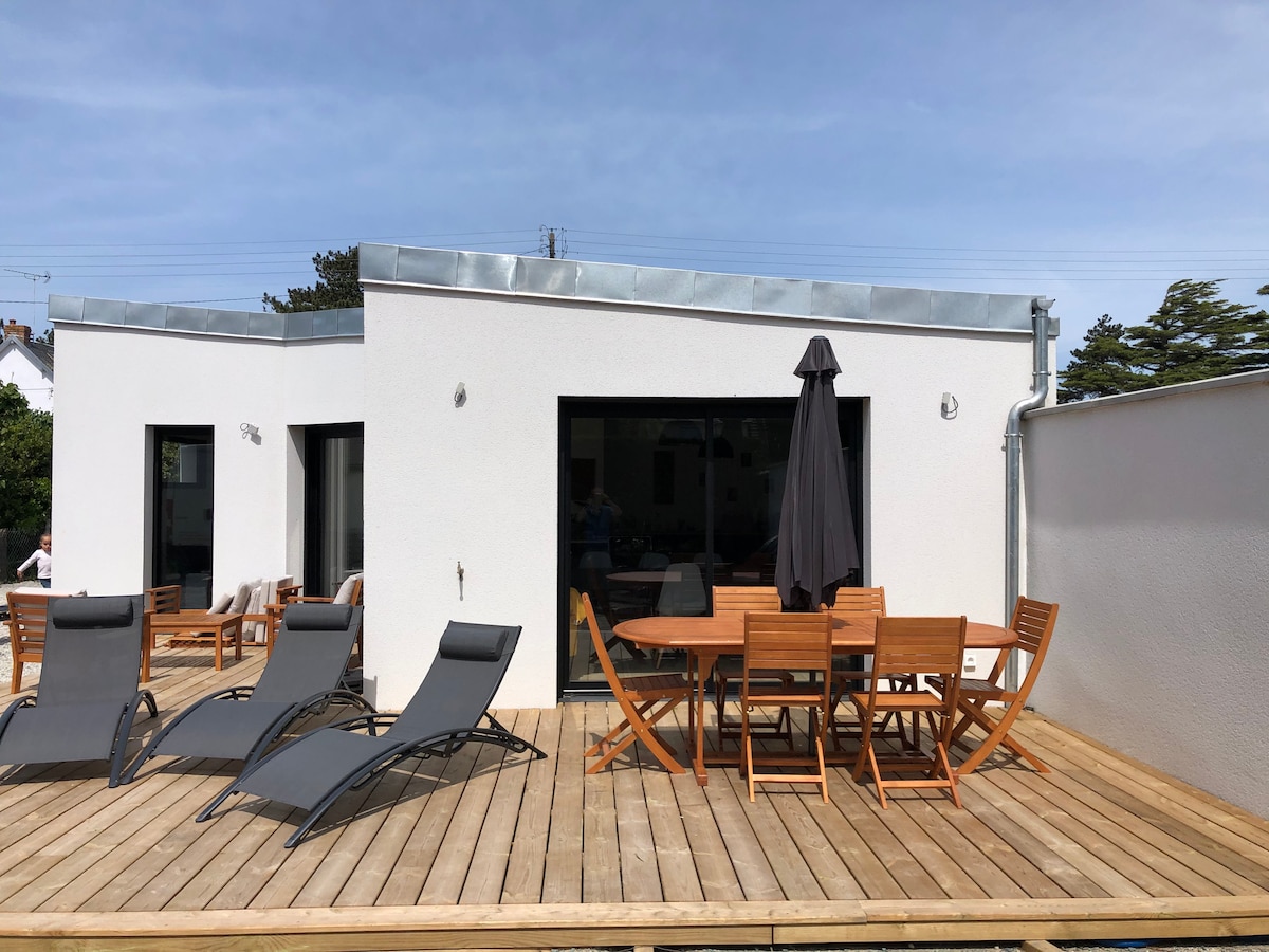 Ճարտարապետների վիլլա շուկայական քաղաքի սրտում ՝ լողի սպա կենտրոնով ։ Լիովին կահավորված ժամանակակից փայտե շրջանակի կառուցում (2020 թ. հուլիս )։ Շատ գեղեցիկ պայծառություն ։ Բացօթյա տեռաս ՝ կահավորված ներկառուցված լողավազանով (ՋԱԿՈՒԶԻ )։ 4 հիդրոմերսման կետեր + հակակարկտային լողավազան ։ Ջուրը ջեռուցվում է ամբողջ տարվա ընթացքում մինչև 33° (իդեալական է լողափից վերադառնալիս կամ բացօթյա միջոցառումներից վերադառնալիս) Բացօթյա ցնցուղ տաք ջրով Շրջակայքը վայելելու համար հասանելի հեծանիվներ (Կարտերետ, Պորտբեյլ, Բարնևիլ լողափ)