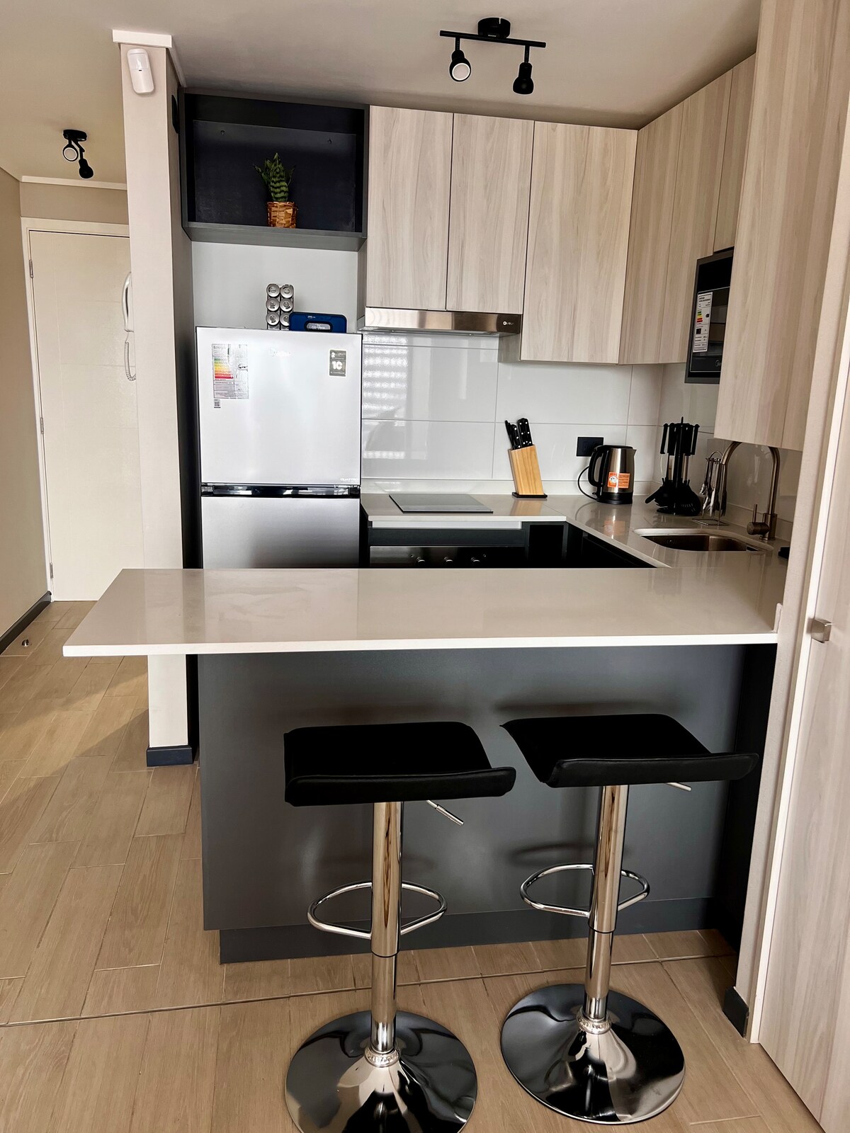 Հարմարավետ, ընդարձակ և ժամանակակից Loft - ը, որը գտնվում է Cerro Barón - ի կոննոտում, որի համայնապատկերը դեպի Վալպարաիսո ծովածոցն այն անզուգական է դարձնում: Լիովին կահավորված լոֆթ, ներառում է մեկ անձի համար նախատեսված սրբիչների հավաքածու և սպիտակեղեն, դուք պարտք եք միայն հագուստ և անձնական իրեր ։ Քանի որ շենքն ունի մարզասրահ և լվացքատուն, այն դառնում է հիանալի տարբերակ մի քանի օր հանգստանալու կամ հեռավար աշխատանքի համար: Ննջում է մինչև 3 հյուր, հասանելի է միայն ֆուտոնով (չափը ՝ 1,3x2 [մ] երկարությամբ)
