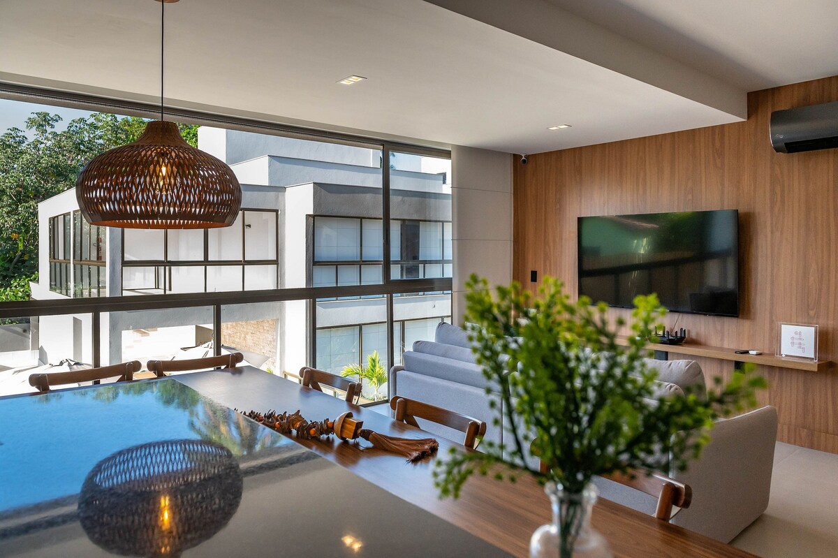 Բացահայտեք Casa Origami-ն։ Այն ոգեշնչված է օրիգամի արվեստով և գտնվում է լողափից 40 մ, սերֆինգի վայրից՝ 50 մ, իսկ Տայպու դե Ֆորայի լողավազաններից՝ 300 մ հեռավորության վրա։ 3 լյուքս, ամբողջական խոհանոց, հյուրասենյակ օդորակիչով, գուրմանների անկյուն և մասնավոր լողավազան․ այս տունը հմայքով լի արևադարձային հանգստի վայր է։ Ամենօրյա մաքրություն և խոհարար՝ հանգիստը առավելագույնս վայելելու համար։