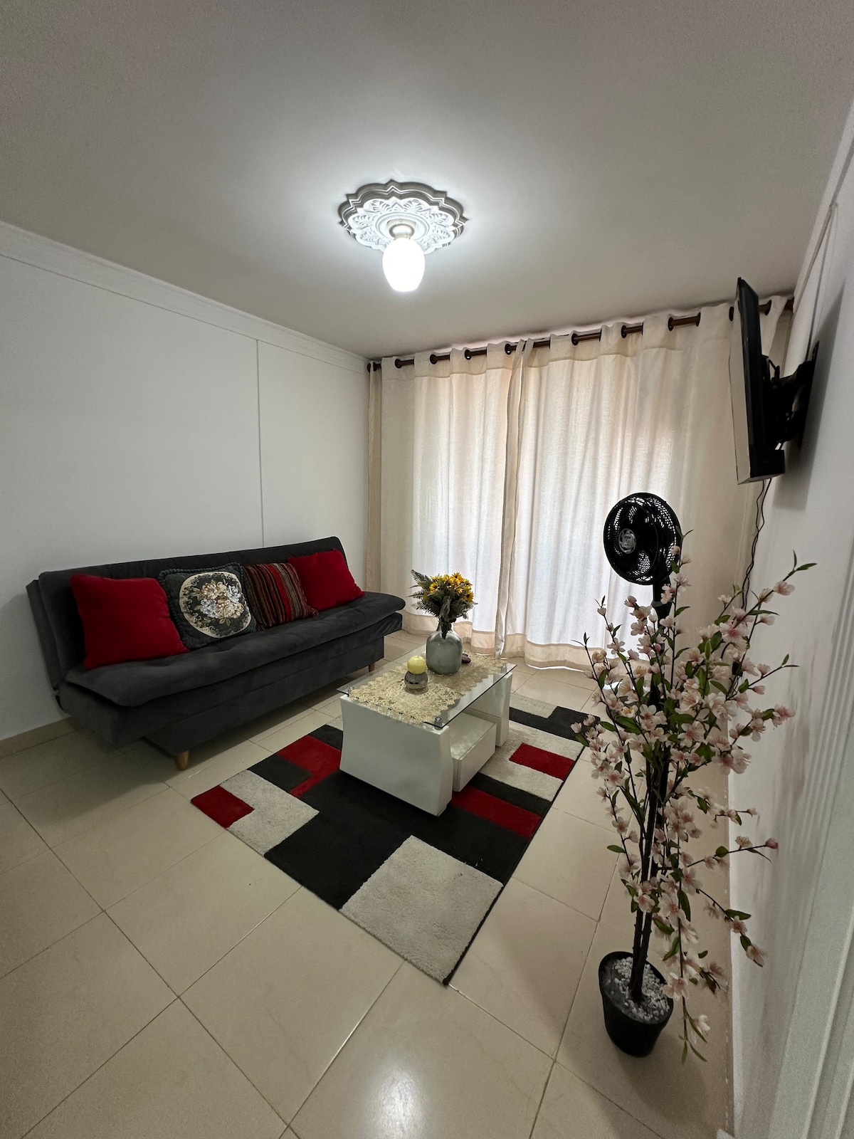 Զվարճացեք ամբողջ ընտանիքի հետ այս նորաձև մնալու վայրում ։ Այն վայելում է քաղաքի արտոնյալ վայրը, քանի որ շատ մոտ է առևտրի կենտրոններին, համալսարանին, բանկերին, հանգստին ։ Շենքն ունի հյուրանոցի նախասրահ և շուրջօրյա հսկվող կայանատեղի ։ Բնակարանը հագեցած է բոլոր հարմարություններով, որոնք կարող եք վայելել ընտանիքի կամ գործնական ուղևորության հետ: Այն ունի 2 - ական սենյակ ՝ իր լոգասենյակով, հյուրասենյակով, սոցիալական լոգասենյակով, ճաշասենյակով, խոհանոցով, 3 օդորակիչով ։