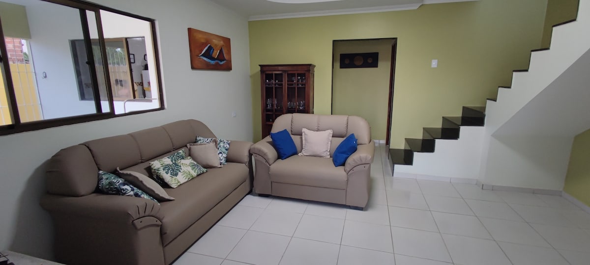 Տունն ունի երեք ննջասենյակ , երկու առանձնաբաժին, որոնք պարունակում են նաև սոցիալական լոգասենյակ, սենյակները բաղկացած են մեծ երկտեղանի մահճակալներից, բոլորը ՝ օդորակիչով, երեք նստատեղով թախտ ։ Մենք երեք մեքենայի համար նախատեսված տարածք ունենք ավտոտնակում, մեծ բնակելի տարածք ՝ ցնցուղով և մանղալով, սառցարան դրսի տարածքում և շատ մոտ է կոնդոմինիումի հանգստի գոտուն ։