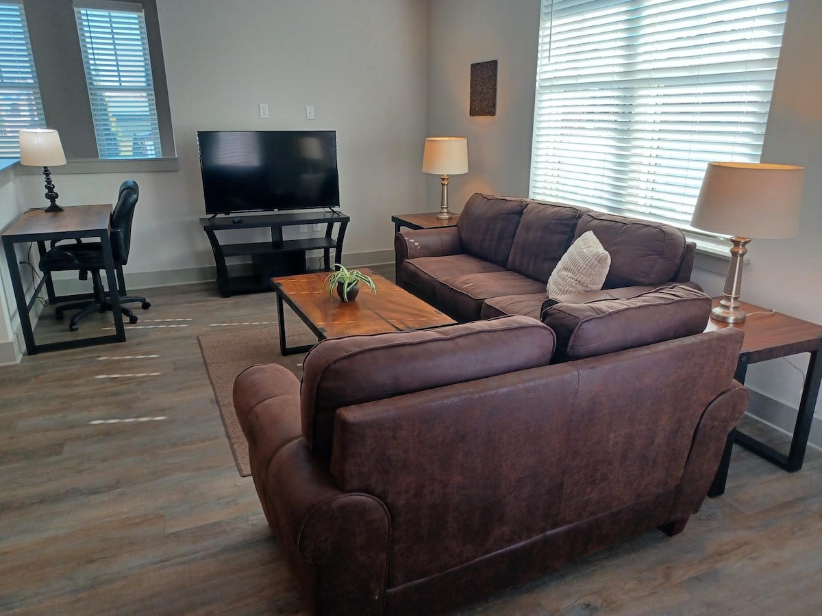 New life to an old building! Beautiful hardwood floors, exposed brick walls, large windows for daytime views, blackout shades for sound sleeping and a stunning rooftop balcony for relaxing or playing games with family and friends. Enjoy a live show at Glasgow's Historic Plaza right outside your window. Walk to local restaurants, shops, Cultural Center, hear local music, visit our farmer's market, attend a church service, enjoy the church bells. We hope you choose to enjoy your visit with us!