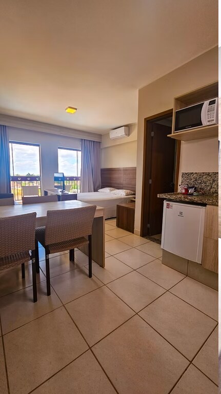 Ճաշեք ամբողջ ընտանիքի հետ այս նորաձև վայրում ։ Մեկ (1) սենյականոց բնակարան Barretos Country Thermas Resort - ի ներսում ՝ հյուրանոցի հարմարություններով (անկողնային պարագաներ, լոգասենյակ, սենյակների մաքրում և հարմարություններ )։ Ողջ ժամանակահատվածում հյուրերին հասանելի կլինի Barretos Country Park - ը, որը ներառում է լողավազանի համալիր, որտեղ նրանք զվարճանալու են մեծահասակների և երեխաների համար ՝ սահուղիներով, ալիքային լողավազանով, ձկնորսությամբ, դանդաղ գետով և այլն ։