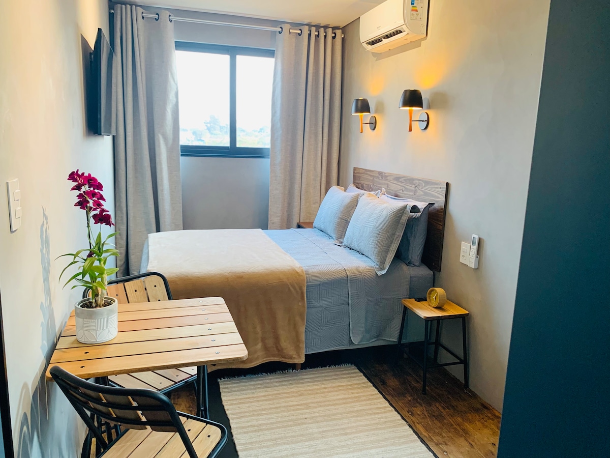 Նոր բնակարան, որը գտնվում է հետիոտնային այգու ներսում, որտեղ տեղի է ունենում Barretos Peon's Party - ը: Հարմարություններ ՝- 1 հատ երկտեղանի գրպանի զսպանակավոր մահճակալ - 2 ներքնակ - անկողնային սպիտակեղեն - Լոգարանի սրբիչները քնում են մինչև 4 հոգի - Ջրի զտիչ - Tostequeira - Մաքրման հիմնական պարագաներ - Խոհանոցային պարագաներ (կաթսաներ, սեղանի սպասք, բաժակներ, սպասք...) - Ինդուկցիոն սալօջախ - Սառնարան - Միկրոալիքային վառարաններ
