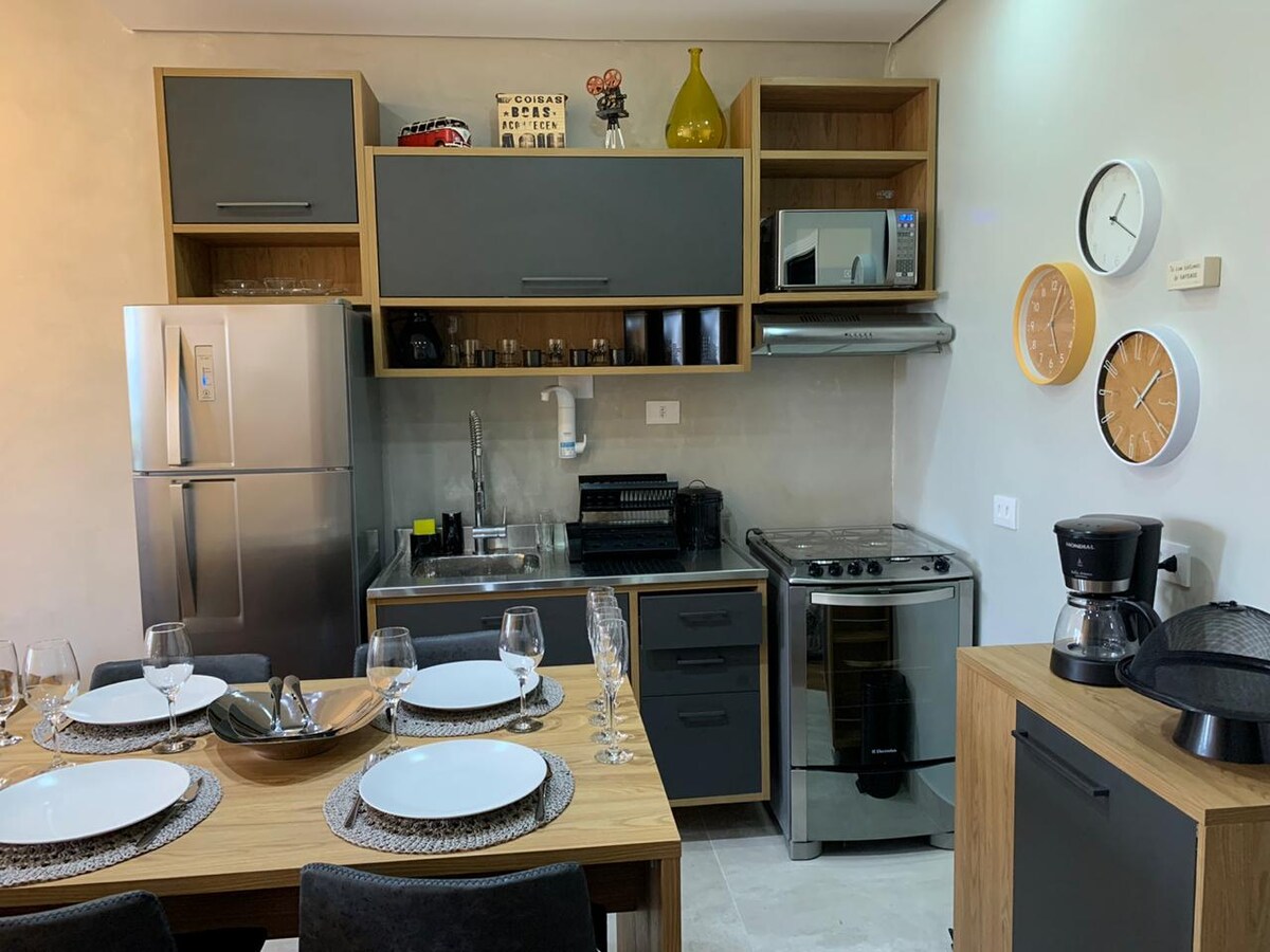Բնակարան Ալֆավիլի սրտում ՝ աշխատելու, սովորելու, հանգստանալու, խորհրդատվությունների, հարցազրույցների, քննությունների, դասընթացների համար ։ Երկտեղանոց մահճակալ և բազմոց մահճակալ: Առևտրային օբյեկտների և, առհասարակ, ծառայությունների մոտակայքում ։ Ամեն ինչ հարևանությամբ և... ոտքով: Գործում է ջեռուցվող լողավազան և մարզասրահ ։ Մաքրել վարագույրները ձեր հանգստի համար: Խոհանոց ՝ ամեն ինչով ։ Տարածք ավտոտնակում, որը ներառված է կացարանում ։ Ipê - ն աշխատում է տախտակի հատակով ։
