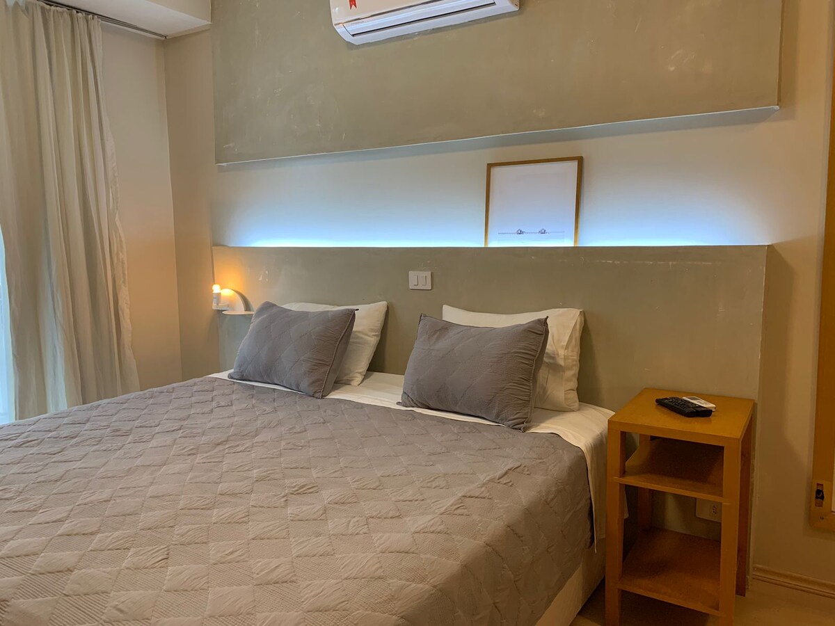 Հարմարավետ բնակարան՝ գերազանց գտնվելու վայրով Ալֆավիլի կենտրոնում։ Հացաբուլկեղենի, շուկաների, առևտրի կենտրոնների, գնումների, ռեստորանների, բանկերի, դեղատների և հիվանդանոցների մոտ: Հանգիստ, անվտանգ և խաղաղ փողոցում գտնվող շենքում կա՝ Ընդունարան շուրջօրյա ։ Ռեստորան նախաճաշով, ճաշով և ընթրիքով (գները ստուգեք ռեստորանում): Գիմնազիա ։ Լողավազան (ներկայումս վերանորոգման փուլում է)։ Ի թիվս այլոց… OBS. հնարավոր է առանձնացնել մահճակալները 2 մեկտեղանի մահճակալի համար: