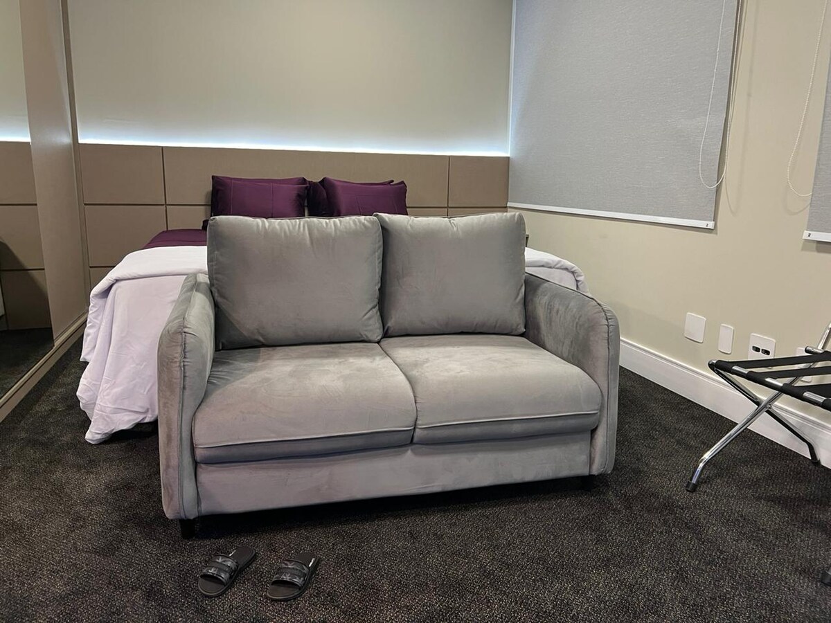 Հարմարավետ ապարտ - հյուրանոց ՝ հիանալի վայրով Ալֆավիլի կենտրոնում: Հացաբուլկեղենի, շուկաների, առևտրի կենտրոնների, գնումների, ռեստորանների, բանկերի, դեղատների և հիվանդանոցների մոտ: Գտնվում է հանգիստ և անվտանգ փողոցում ։ Sol Alphaville Hotel & Residence-ում գործում է շուրջօրյա ընդունարան, սենյակների սպասարկում, կայանատեղի ($), ռեստորան ($), մարզասրահ, լողավազան, սաունա, հանդիպումների սենյակներ, արդուկման սենյակ։ Նշում․ ես ունեմ այլ բնակարաններ։ Տես իմ հայտարարությունները իմ պրոֆիլում։