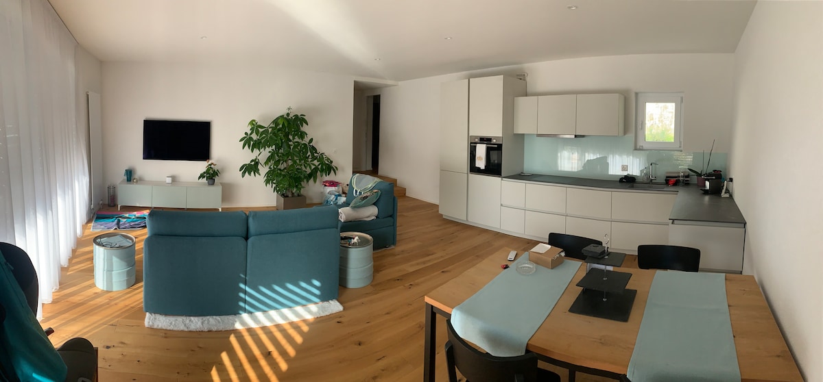 3 - րդ հարկում գտնվող երեք ձեղնահարկով բնակարան, հարմարավետ խոհանոց և մեծ կտուր ՝ 2 - րդ հարկում ։ Տունը գտնվում է Բրաուզբադ թաղամասում, որն անմիջապես օդանավակայանի ավտոբուսի գծի վրա է ։ SBB երկաթուղային կայարանը և հին քաղաքը կարելի է հեշտությամբ հասնել 10 րոպեում ՝ տրամվայով, հեծանիվով (անհրաժեշտության դեպքում կարելի է տրամադրել) կամ ոտքով: Խոհանոցը լիովին ապահովված է անհրաժեշտ ամեն ինչով: Գնումները հասանելի են անմիջապես տան կողքին ։ Մոտակայքում գտնվող ռեստորաններ ։