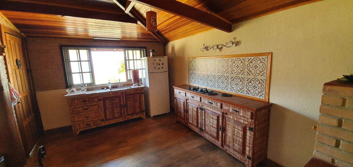 Հետնաբակով հոսում է բյուրեղապակու պես մաքուր առու, որը այս աշնանը հովություն, բնության հնչյուններ և թարմացնող ջրասուզման հրավեր է բերում։ Սերրա դա Մանտիկեյրայի ստորոտում գտնվող շալեն հարմարավետ ապաստարան է, որտեղ կարելի է վայելել ամառը՝ հմայքով, փայտի վառարանով ջակուզիով՝ աստղազարդ երկնքի տակ, մասնավոր հիդրոմասաժային լողավազանով և Ռիբեյրայի մոտ գտնվող տախտակամածով։ Լավ կահավորված խոհանոց, որը միաձուլված է հյուրասենյակի հետ, հարմար է ընտանիքների համար, հարմարավետ մահճակալներ, Wi-Fi, ցանցաճոճ, այգի՝ խարույկատեղով։ Մենք խորհուրդ ենք տալիս մի հարևանի, որը տնական կերակուրներ է մատուցում։