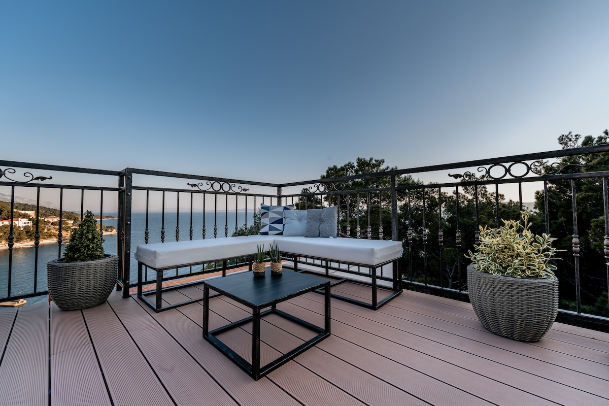 Բնակարան երկնքում ՝ տեռասով և ծովի տեսարանով
