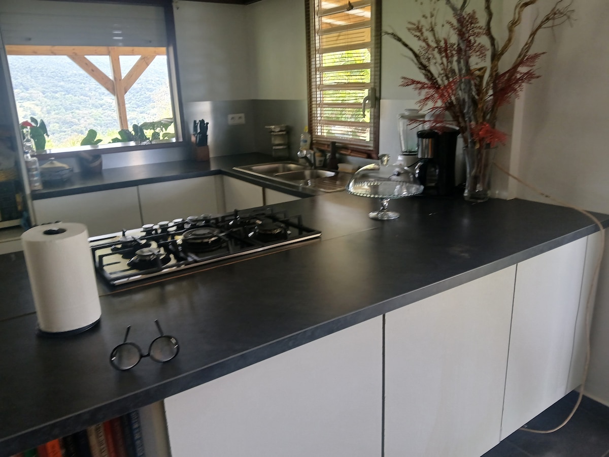 Ce logement paisible offre un séjour détente pour toute la famille. La Villa du Volcan – Nature & fraîcheur à Saint-Claude Située à 680 route du Camp Jacob, cette charmante maison créole vous accueille au cœur des montagnes du Volcan. Profitez d’un environnement paisible, entouré de nature, de rivières et de sentiers de randonnée. Comprend un salon avec grand canapé, 3 chambres lit double, une cuisine équipée, une terrasse, et un jardin tropical. Une douche indépendante, Wi-Fi.