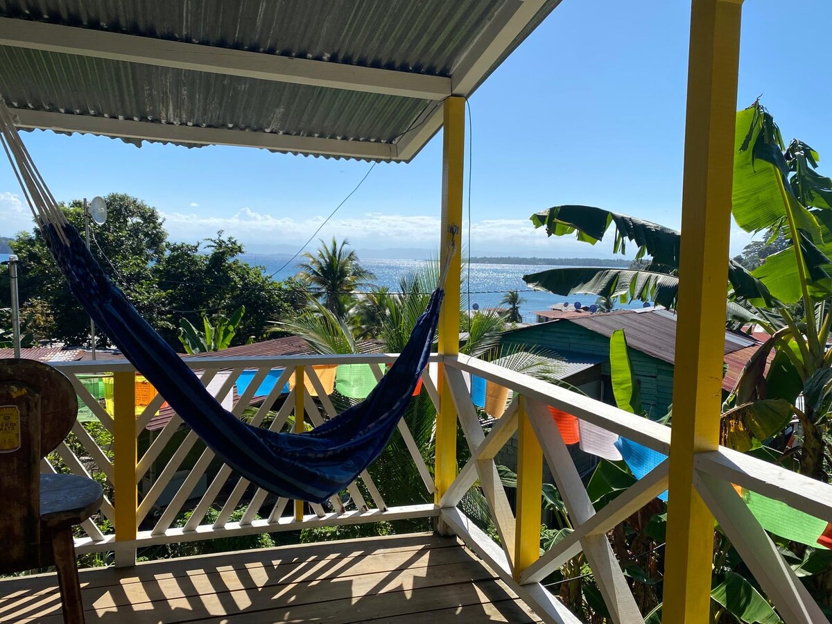 Bamboo Wave is a waterfront house located on Isla Bastimentos (2/3 national park), around the corner from Old Bank (Authentic Afro-Caribbean, 3-4 minutes to quaint Basti Town with 4 restaurants), and a 10-min. boat taxi from Bocas Town, you will find us on the quiet, breezy side of the island - perfect for some relaxation and a great access point to all the area has to offer. Nearly 180 degree water view right in front!! Yoga next door If you want loud music and heat--stay in town, not here!!