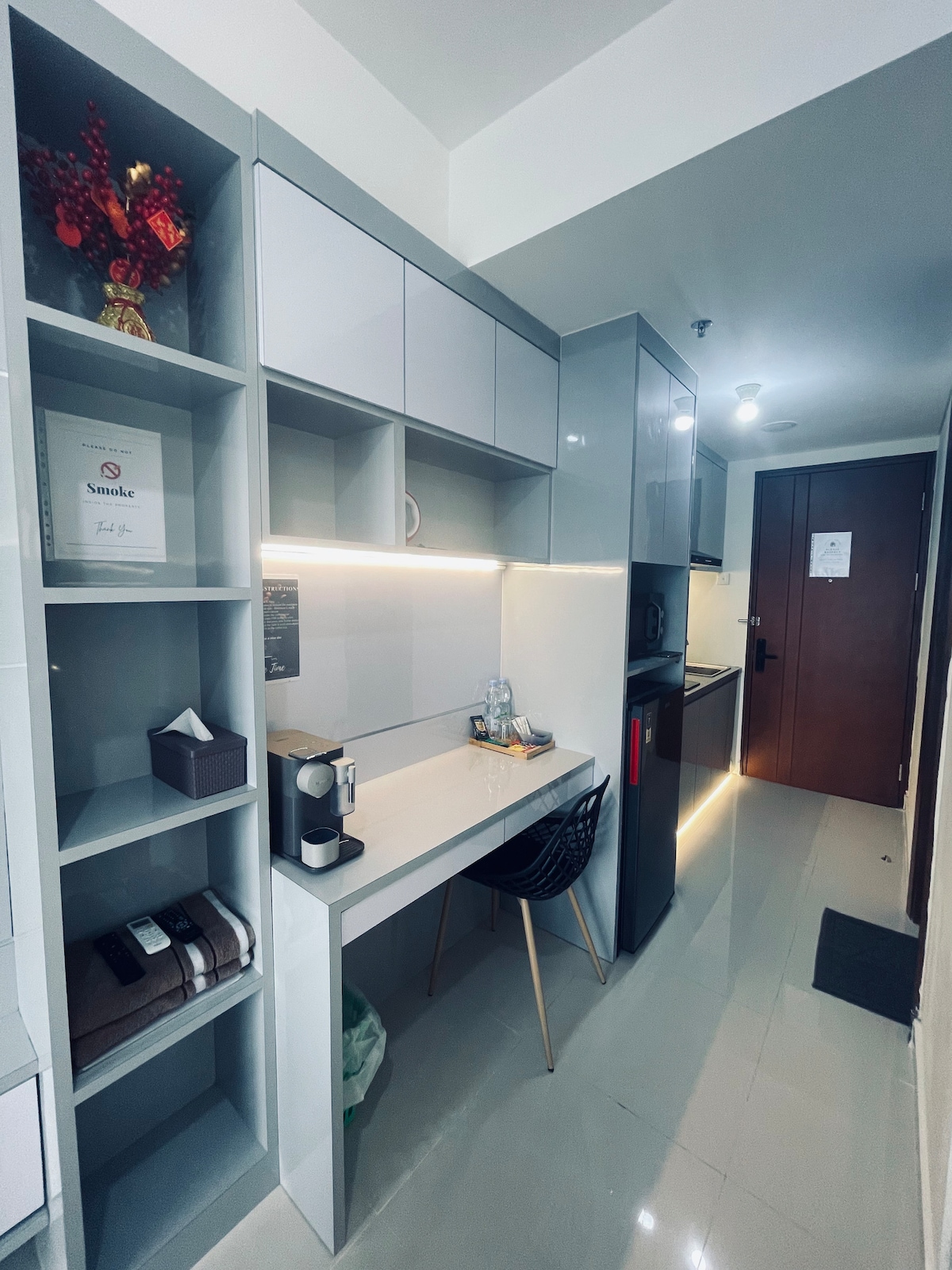 Hello!!! 😊 Welcome to Idealista Sea View Pollux Habibie Studio Apartment.🌟 ★ Luxury in Simplicity | Comfort in Every Detail ★ We provide a unit with thoughtful design, elegance in minimalism, and high-quality touches that make a space both sophisticated and effortlessly comfortable. ✨