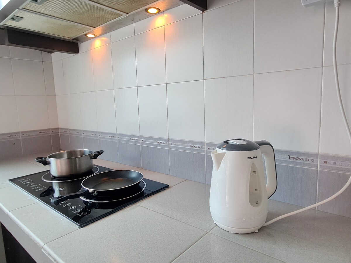 This is a unique place with Balinese styles that make you relax and comfortable. 2 bedrooms with attached bathroom make you more privacy and 1 bedroom with separate bathroom. Equipped with unlimited 5G router with speed up to 500Mbps can let you surf to satisfy, together with TV box you can watch more than 10 countries live TV shows. Located at Taman Bukit Perdana where a lot of food and beverages like Zus coffee, Mixue, Thai food, fry carrot cake ,oyster morning got Ah Pui spicy noodles & more