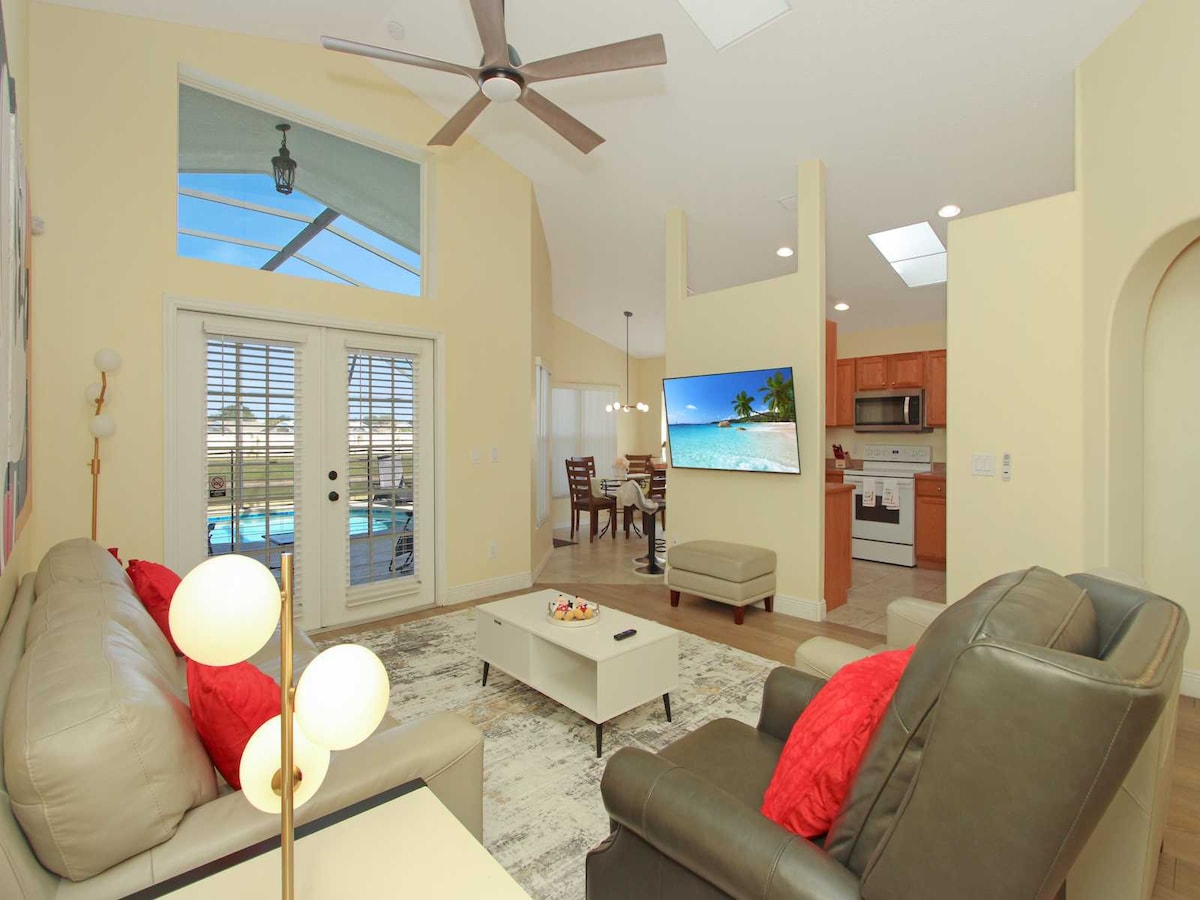 Sit back and relax in this stylish home with all the amenities you need for a fun family getaway. This home has a spacious layout with 3 bedrooms and 2 baths. We have thought of everything so you don't have to-toiletries,washer/dryer, and wifi. Enjoy your morning coffee in the screened in pool area with a beautiful sunrise and lake view or sip a glass of wine while floating in the pool. Just minutes to Theme Parks and major highways, this is the dream home you have been waiting for!