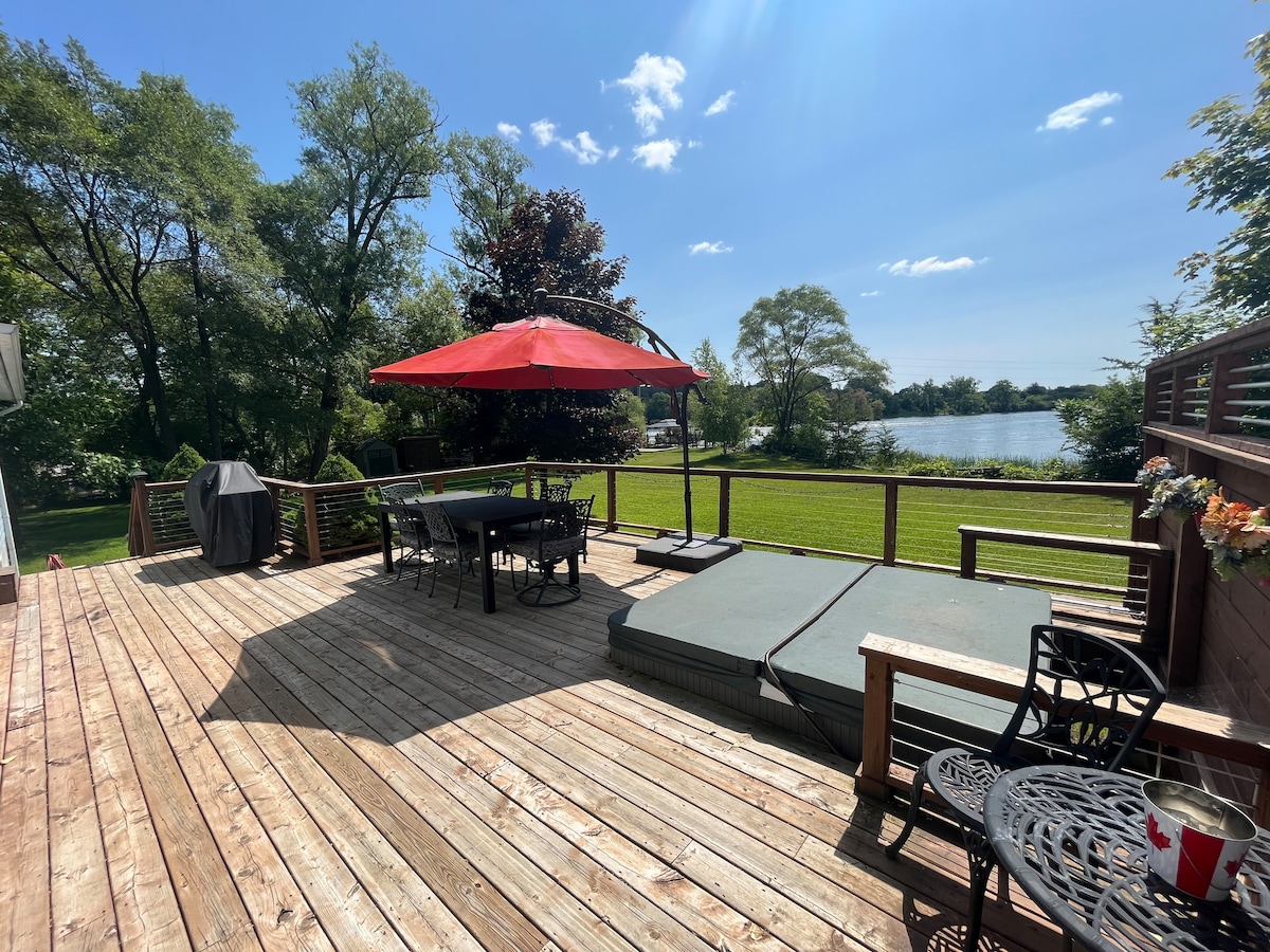 Escape to this beautifully updated lakefront home on 170ft of private shoreline in beautiful Prince Edward County. Enjoy our new panoramic view sauna, hot tub and outdoor shower. This relaxing getaway is located on the Bay of Quinte, just 2hrs east of Toronto. A 30 min drive to Sandbanks, 20 mins to Picton/Wellington. Close to many wineries and breweries. Large yard space makes this an ideal home for groups, couples and families looking for postcard views and private spa amenities. ST-2023-0002