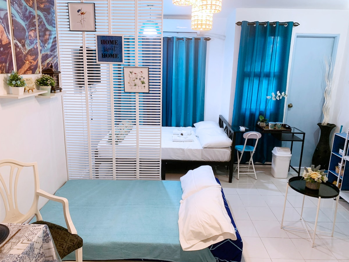 BLUE DIAMOND STAYCATION Refresh and relax in this calming, cool-toned condo unit right beside Enchanted Kingdom. This serene staycation is the premium getaway you and your loved ones deserve. If you’re needing a combination of cleanliness, coziness, and convenience, Blue Diamond has what you’re looking for. Unlimited Wi-fi, Netflix, fresh towels and linens, and much more! CHECK-IN: 3PM CHECKOUT: 12PM *Elevator is currently out of service. Access via stairs only (4th floor of low rise bldg).*