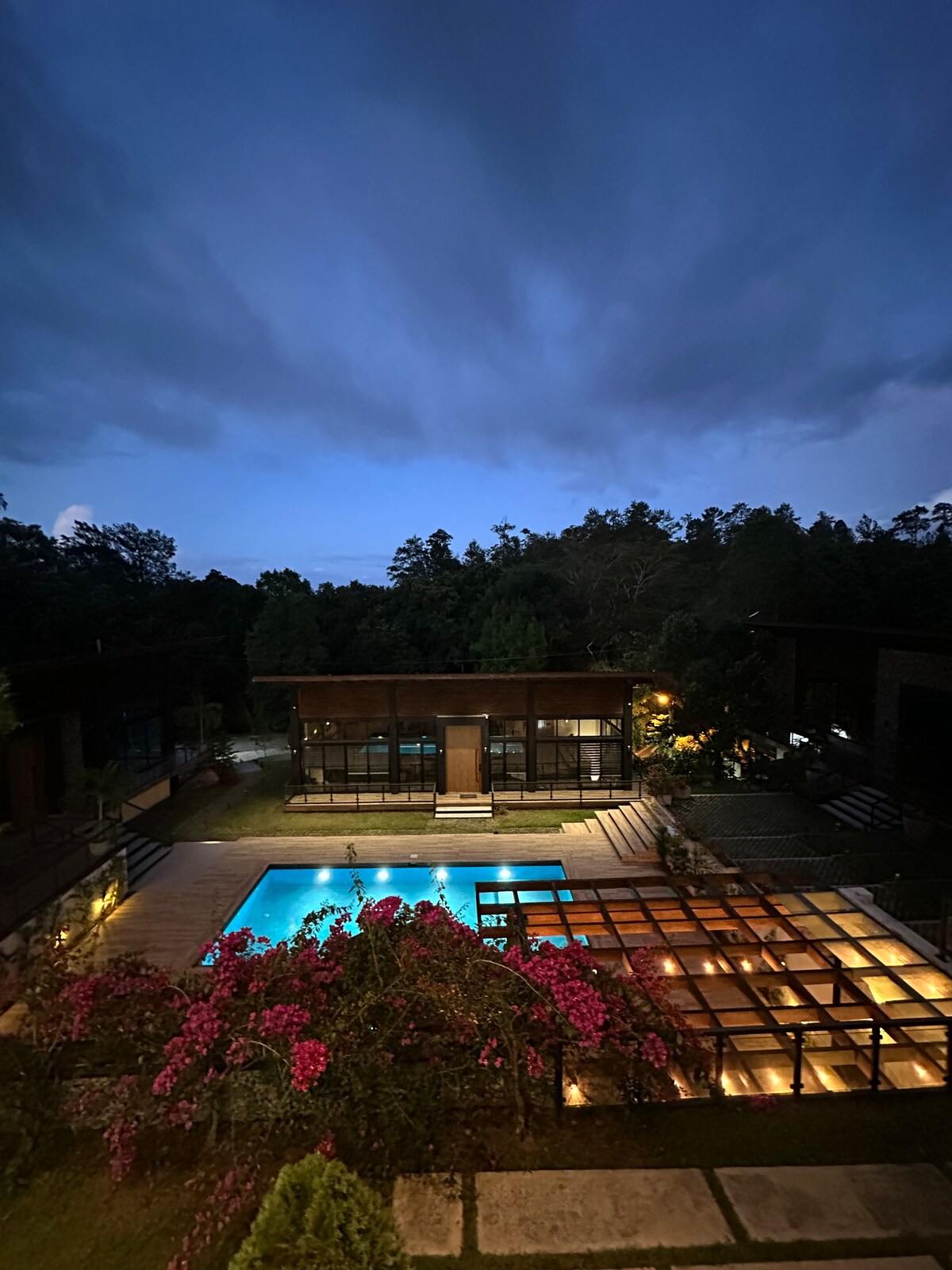 Get back in touch with nature surrounded by the lush tropical forest of Jarabacoa. This modern mountain home features soaring ceilings, natural materials throughout, contrasting textures, and access to a shared outdoor pool. The property is located a few minutes from the town of Jarabacoa and tourist attractions such as rafting, cycling trails, cliff diving, paragliding, ziplining, and other excursions. The vacation complex is conveniently located across from the most popular steakhouse in the area, and has a community pool, playground, and tennis and basketball courts. Rental of the home is for the exclusive use of guests. In case of emergency or any unforeseen issues guests will be assisted by the property manager. If requested and available, housekeeping services can be provided including meal preparation (breakfast, lunch, dinner) for an additional fee. The property is located on a holiday complex located in the area of Buena Vista, Jarabacoa. Para contacto por whattsap +1 202-476-9402. La locación del complejo vacacional es estratégica y con buen acceso, incluso hay lineas de transporte público que cruzan justo al frente de la entrada del complejo. La casa cuenta con una marquesina con capacidad para cuatro (4) vehículos. También hay un área de parqueo para visitantes con capacidad para diez (10) vehículos, a unos de 50 metros de la casa. The home has a generator in case of electrical outages.