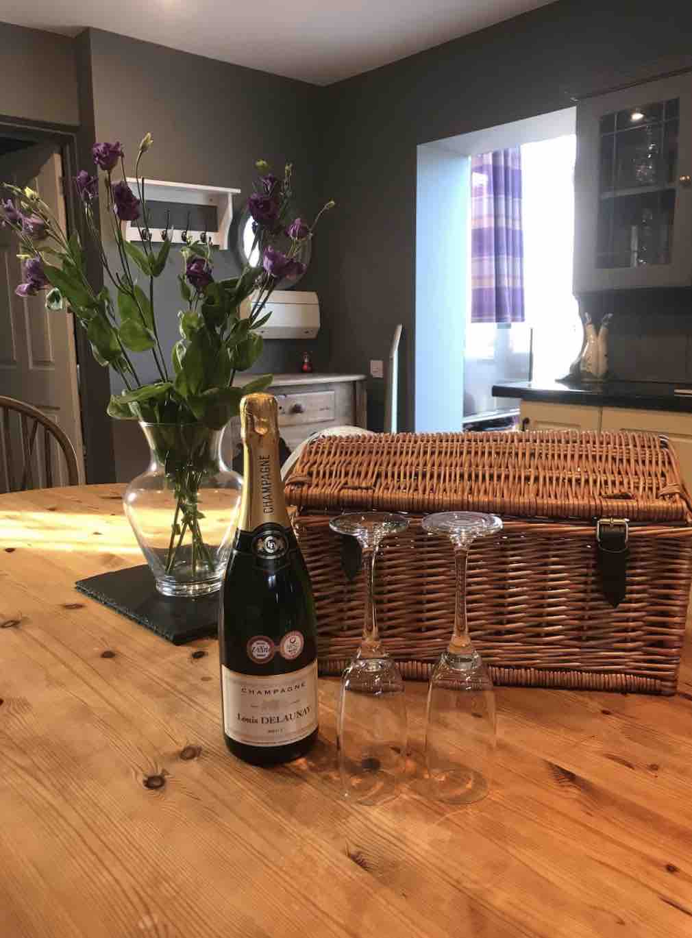 The Yurt offers Glamping on another level.Timber framed with decked outside area there is everything you could wish for,fully equipped with smart tv, woodburner, double bed & sofa,bespoke kitchen with toaster,kettle,microwave, retro fridge,2 ring hob & full Belfast sink.The bathroom has a toilet, shower & vanity basin & Outside is the added extra of a decked area perfect for alfresco dining & to enjoy the hot tub!