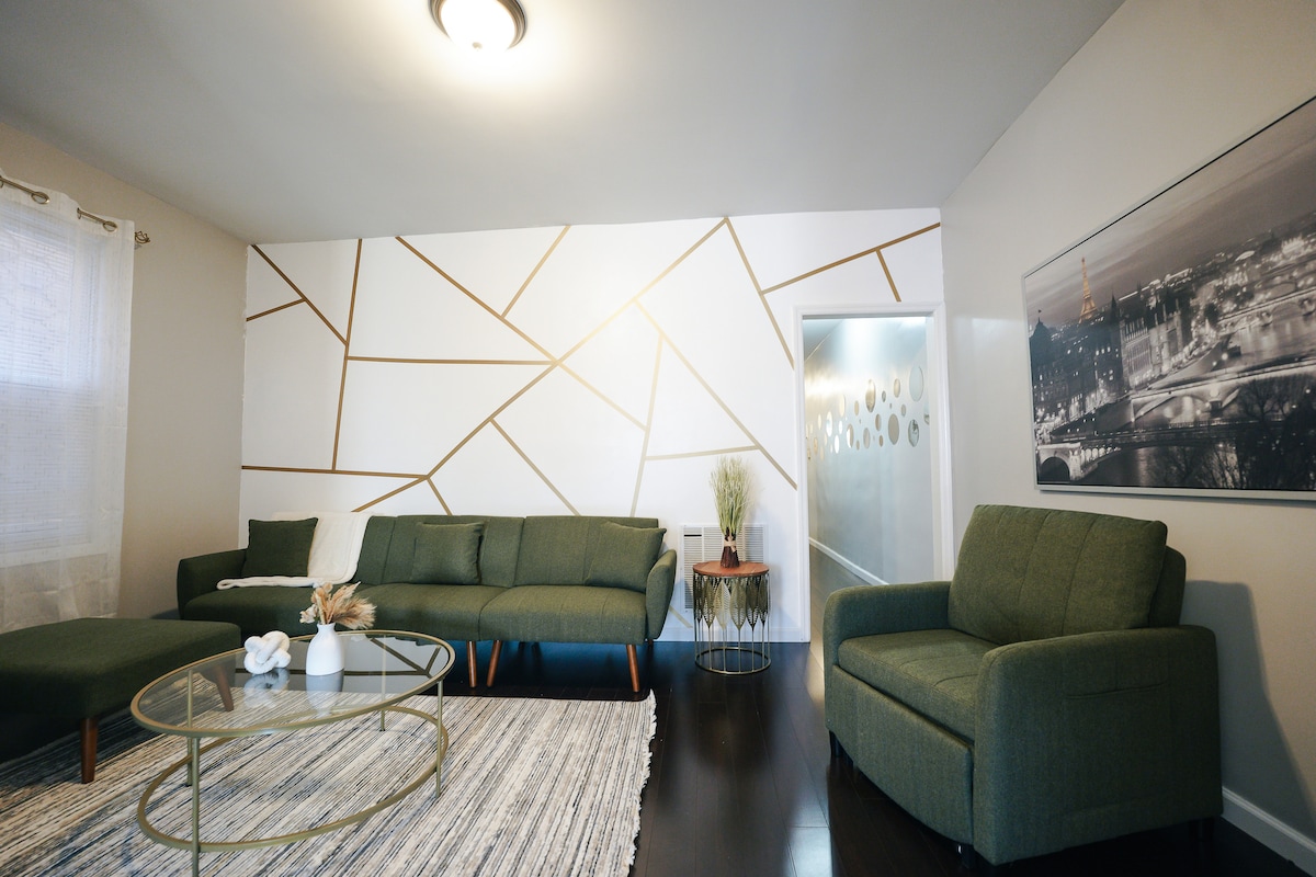 Նյու Յորքի մոտակայքում գտնվող նորաձև 3 սենյականոց բնակարան | Քայլել մինչև գնացքը | Լվացքի մեքենա/չորացուցիչ