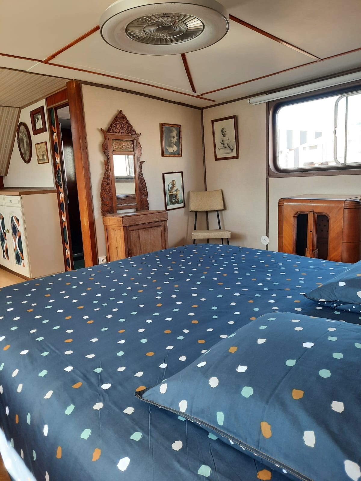 La Péniche Petite Annick vous accueille dans l'ancien carré du Marinier. Transformé en confortable appartement de plus de 50m2, ce duplex peut accueillir jusqu'à 5 personnes. La chambre spacieuse avec son lit king-size est agrémentée d'un boudoir doté d'un lit d'appoint, ouvrant sur la salle de bain avec toilettes et colonne hydro-massante. A l'étage, la cuisine, le coin salon avec son canapé lit en 140, l'espace repas et la terrasse vous offriront une vue imprenable sur le port de plaisance.