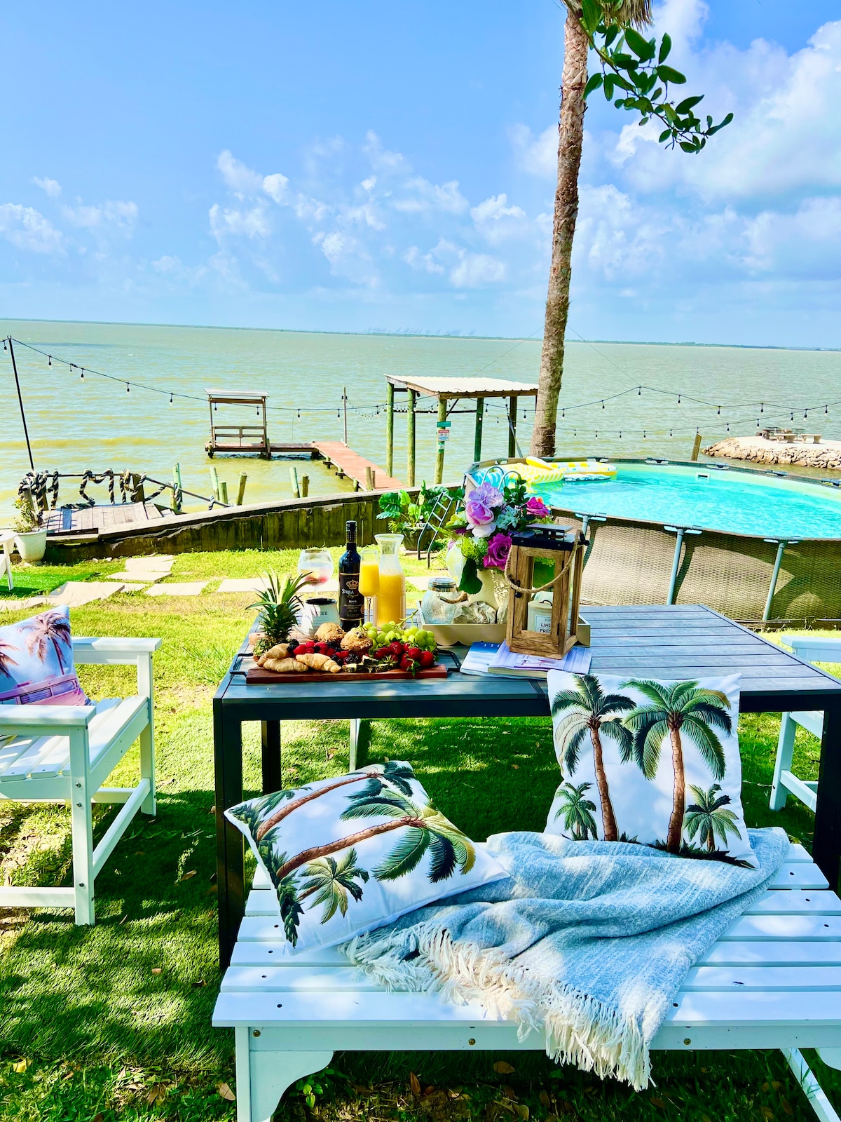Welcome to your perfect waterfront escape! This bayfront home is designed for relaxation, chill, and hang out unforgettable memories with family and friends. Wake up with a cup of coffee on the patio and wind down in the evening with the sunsets on the fishing deck. Spend your days lounging by the pool, and soaking in the hot tub at night with a glass of wine. Cast a line right from the property for a relaxing day of fishing, or simply sit back and take in the peaceful waterfront vibes.