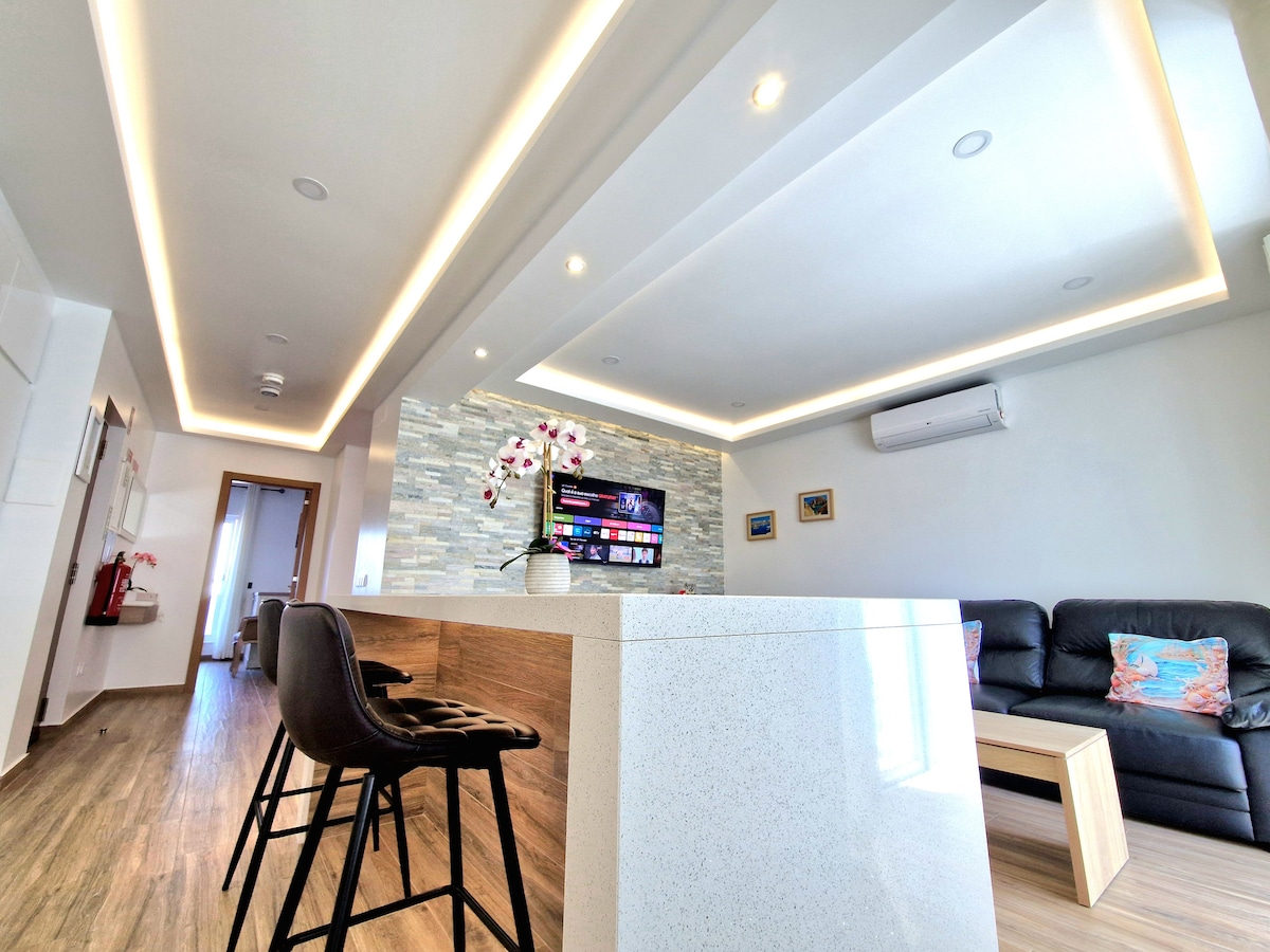 Մարինայի երկայնքով ժամանակակից 2 ննջասենյակով բնակարան ՝ ավտոկայանատեղիով