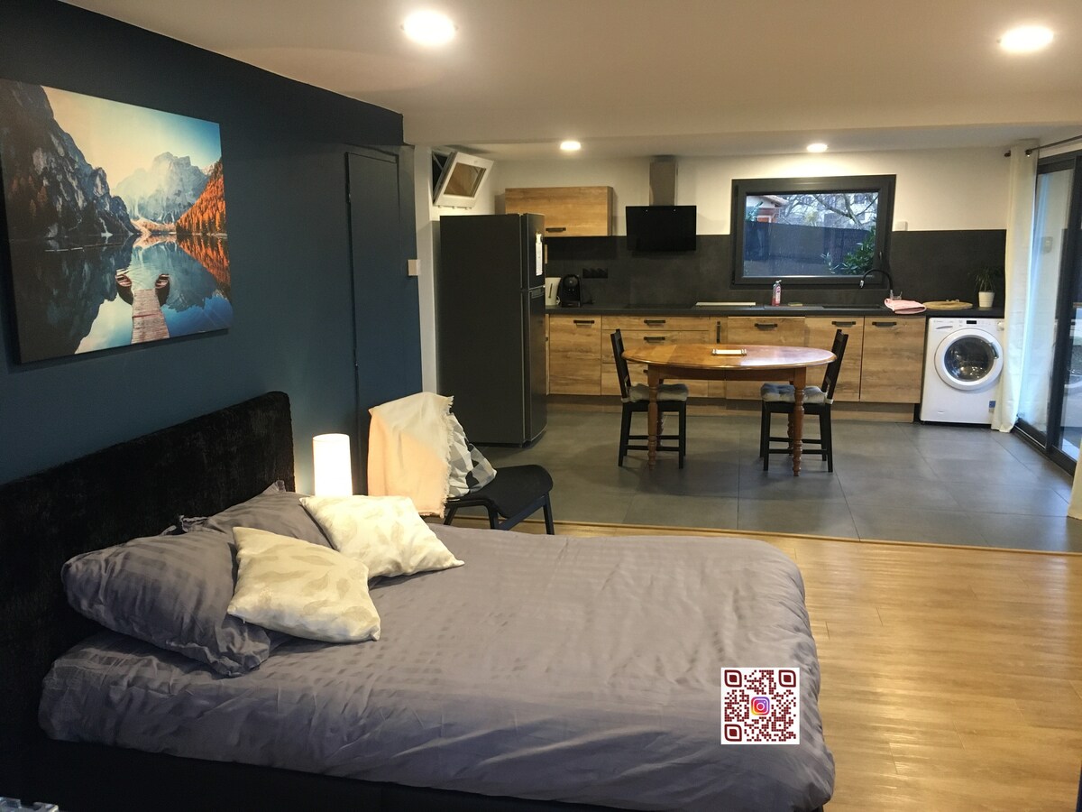2⭐ կահավորված տուրիստական դուպլեքս առանձին մուտքով, պարտեզով և ընդհանուր լողավազանով🏊♂️ սեզոնին։ Առաջին հարկ՝ կահավորված խոհանոցիկ, որը կատարյալ է նախաճաշերի և պարզ կերակուրների համար, և լոգասենյակ։ Վերևում՝ 2 օդորակիչով ննջասենյակ և հյուրասենյակ՝ հեռուստացույցով և բազմոցով մահճակալով, կահավորված ձեղնահարկի տակ, սենյակները շարքով են։ Խաղաղ թաղամաս, մոտ է Վո-ան-Վելեն Լա Սուա մետրոյին/տրամվային և խանութներին։ Անվճար կայանատեղ։ Մենք ապրում ենք տարածքում, հյուրերի տարածքը լիովին առանձնացված է՝ հարմարավետության և առանձնության համար։