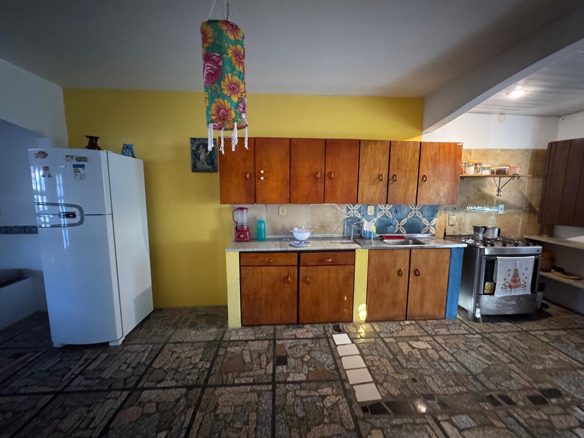 Come and enjoy an unforgettable vacation in our oasis just 300 m from the beach and near the famous Beberibe Cliffs in Ceará, Brazil. Spacious, recently renovated house with 7 bedrooms (6 are suites), all with air conditioning, double beds, and hooks for hammocks. 700 m² of built area, swimming pool, barbecue area, living and dining rooms, and fully equipped kitchen. Have fun in comfort, but please note: loud music, parties, and live bands are not allowed as this is a residential neighborhood.