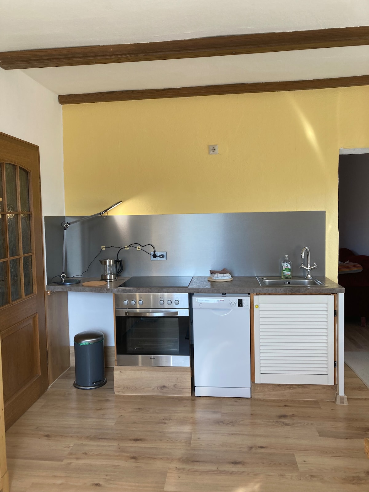 Liebe potenzielle Gäste: Ob auf der Durchreise, für eine kleine Auszeit oder aber für länger - unsere großzügige, bequeme Wohnung Elli ist schnell erreichbar und ein guter Ort, um abends zu entspannen - z.B. auf dem Balkon mit Weitblick. Im Ort gibt es ein schönes Freibad und gute Gastronomie - drumherum viel Wald. Unser Café hat wochentags ab 6 bzw. am Wochenende ab 7 Uhr Frühstück.