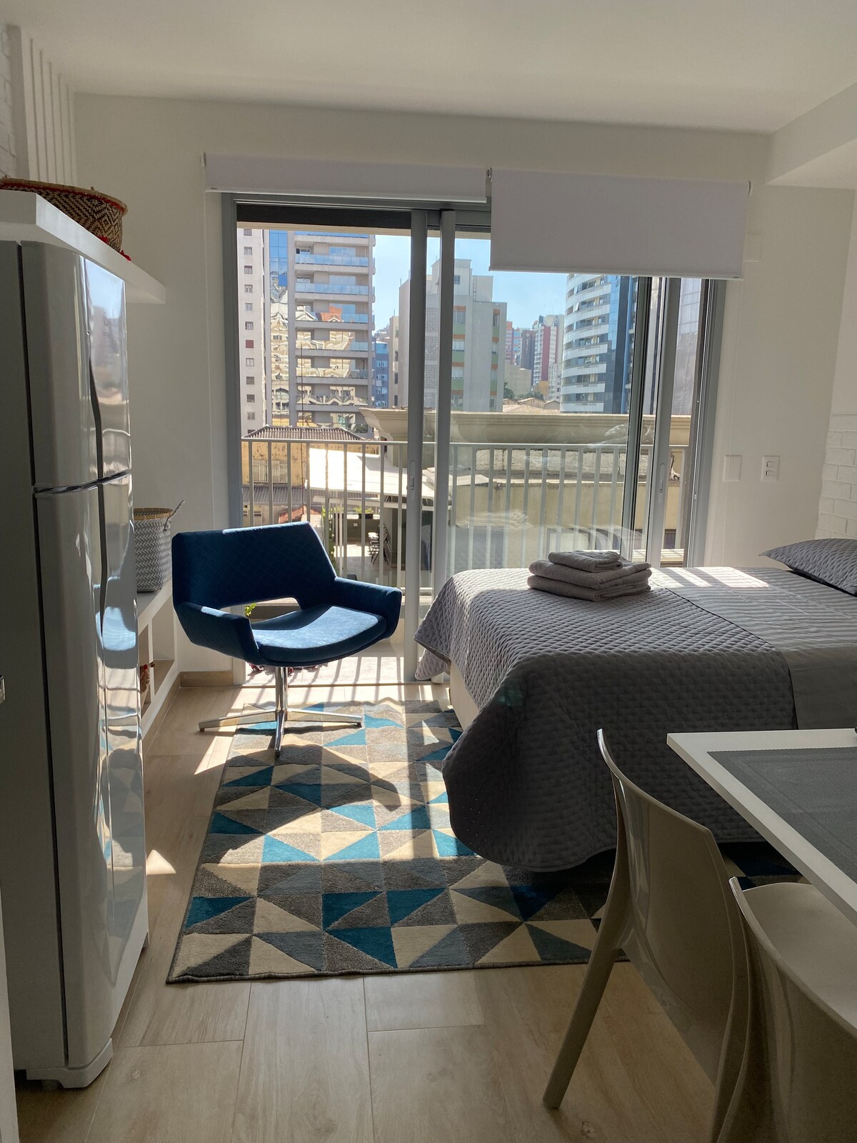 Boas vindas a este partamento novo, de 1 quarto e 1 suíte acolhedores e estadia confortável para até 3 pessoas. A apenas 5 min a pé de 2 estações de metrô e da vibrante vida noturna paulistana e tudo o que a cidade tem a oferecer. Desfrute da piscina no rooftop, wi-fi de 500Mb e TV 50" com Netflix e Amazon. Oferecemos o conforto necessário para uma autêntica experiência urbana. Aproveite ao máximo sua visita a São Paulo, seja a lazer ou negócios, reservando agora mesmo este ponto estratégico!