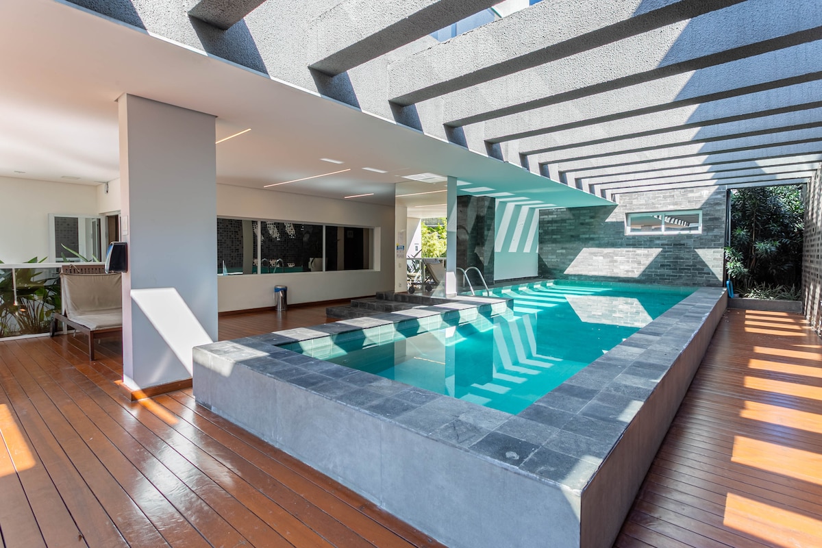 Ստուդիա You Faria Lima ՝ լողավազանով և թափուր մեքենայով ։