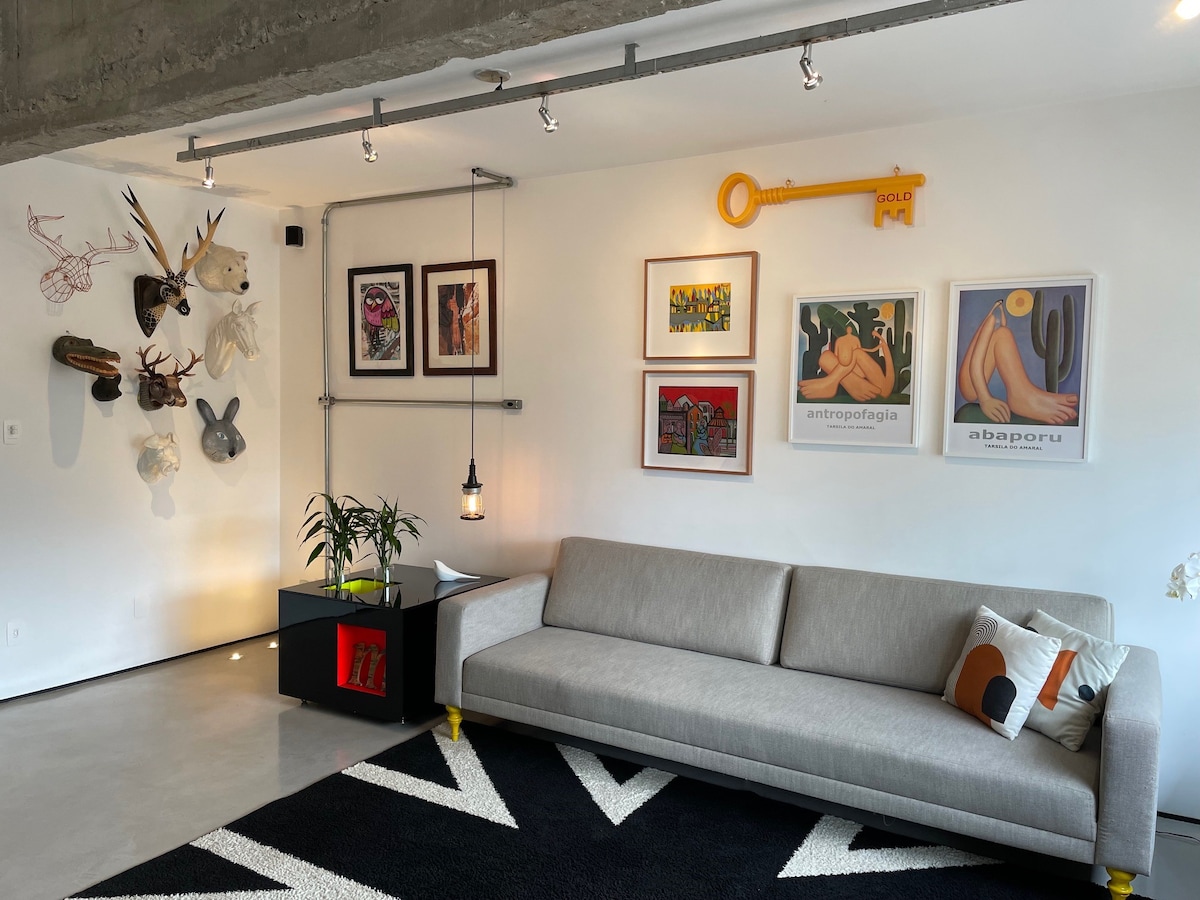 casa/loft 80m2 no coração da Vila Madalena. sala, cozinha e quarto num único ambiente com muitas obras de arte contemporânea , cercado por vegetação deslumbrante.Wi-Fi rápido, espaço de trabalho confortável para quem precisa de home-office, com muitos serviços e facilidades em volta:restaurantes, lojas descoladas. a apenas 15 minutos de caminhada de duas estações de metrô ( Fradique Coutinho e Vila Madalena). ideal para quem quer conforto, descanso, um pouquinho de agito nos fins de semana