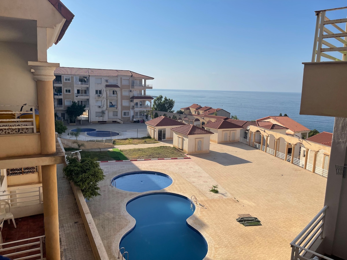 Գեղեցիկ լիովին կահավորված F4 ՝ «Le Belvédère» բնակության վայրում գտնվող Աչ Էլբազ լողափում ։ Իդեալական է տարվա բոլոր ժամանակներում ընտանիքի կամ ընկերների հետ մնալու համար ։ Լողավազան, հարմարեցված և լիովին կահավորված խոհանոց, օդորակիչ, ջեռուցում, 2 գլխավոր ննջասենյակ և մեկ ննջասենյակ ՝ առանձին մահճակալներով, ընդարձակ սանիտարական հարմարություններ, շուրջօրյա տաք ջուր, ինչպես նաև առօրյա կահույք ։