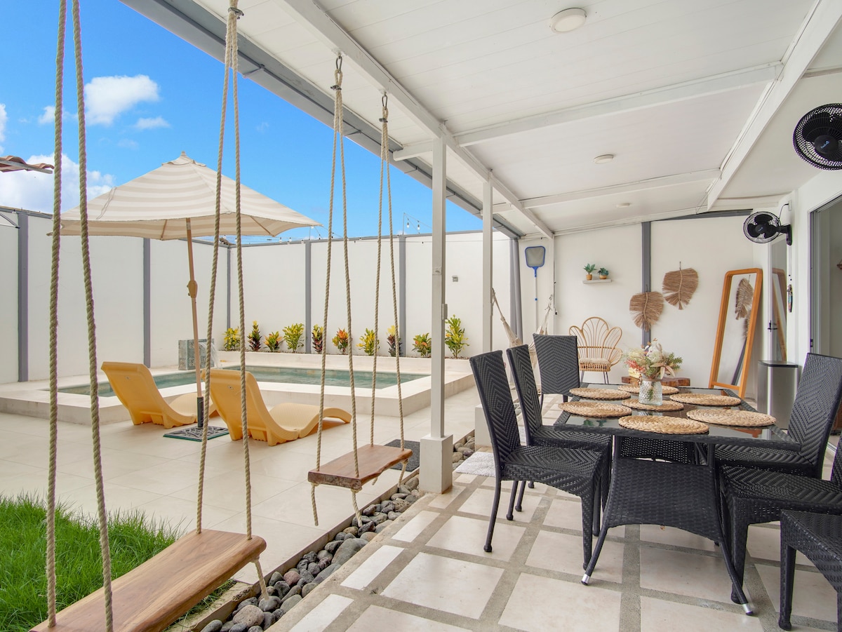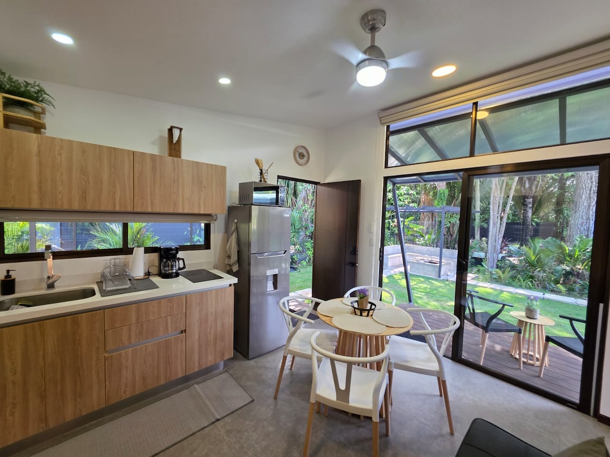 Բացահայտեք Casa Pelícano - ն ՝ բուտիկ ջունգլիներ լողափին մոտ, Պլայա Բեժուկոյից ընդամենը 5 մետր հեռավորության վրա և կարճ գեղատեսիլ ուղևորություն դեպի Պլայաս Ժակո, Հերմոսա, Մանուել Անտոնիո և Մարինա Պեզ Վելա Կուեպոսում: Շրջապատված փարթամ բնությամբ, կապիկներով, մակույկներով և թիթեռներով ՝ այս հարմարավետ հանգստի համար նախատեսված են օդորակիչ, արագ Wi - Fi, ամբողջական խոհանոց և լվացքատուն, 1BR w/ Smart TV, թախտ, 2 տախտակամած, խորոված/կրակարան, ջակուզի/սպա և ապահով կայանատեղի ։ Իդեալական է սերֆինգի, հանգստի կամ հեռավար աշխատանքի համար ։ Խաղաղ, մասնավոր դրախտ ՝ ձեր կատարյալ հանգիստը Կոստա Ռիկայում ։