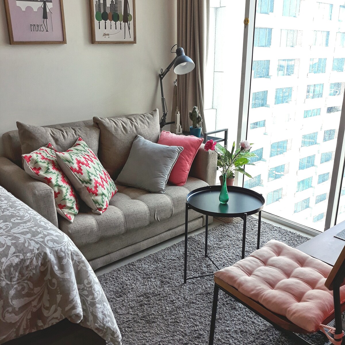 Hi-speed wifi. Netflix. Long stay discount! 🚭 The only unique 2 BR corner suite with industrial chic design. Whether you stay for business or weekend staycation, we will ensure your comfort stay. This self-service NON SMOKING unit located on 32nd fl, boasting amazing view of Bekasi landscape, MBZ elevated road and LRT + high speed train. It has 2200 watt electricity, for 2 AC, fridge and complete kitchen utensils for 4 people. Lagoon Mall is directly below the apartment. Parking is NOT free.