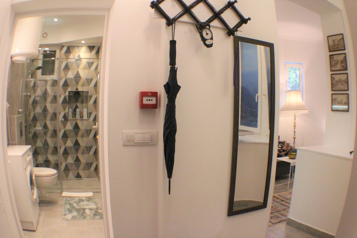 The apartment is full renovated a few months ago and everything is brand new. In the bedroom there is a large comfortable double bed and one big sofa bed in the living room. All in discreet led light. In the kitchen you can enjoy a modern flat-screen cooker, oven, refrigerator with freezer, dishwasher and washing machine and a large bar table. The bathroom is glazed with marble ceramics, it is very compact and clean. The bathroom is equipped with a hairdryer, towels, hygiene sets.