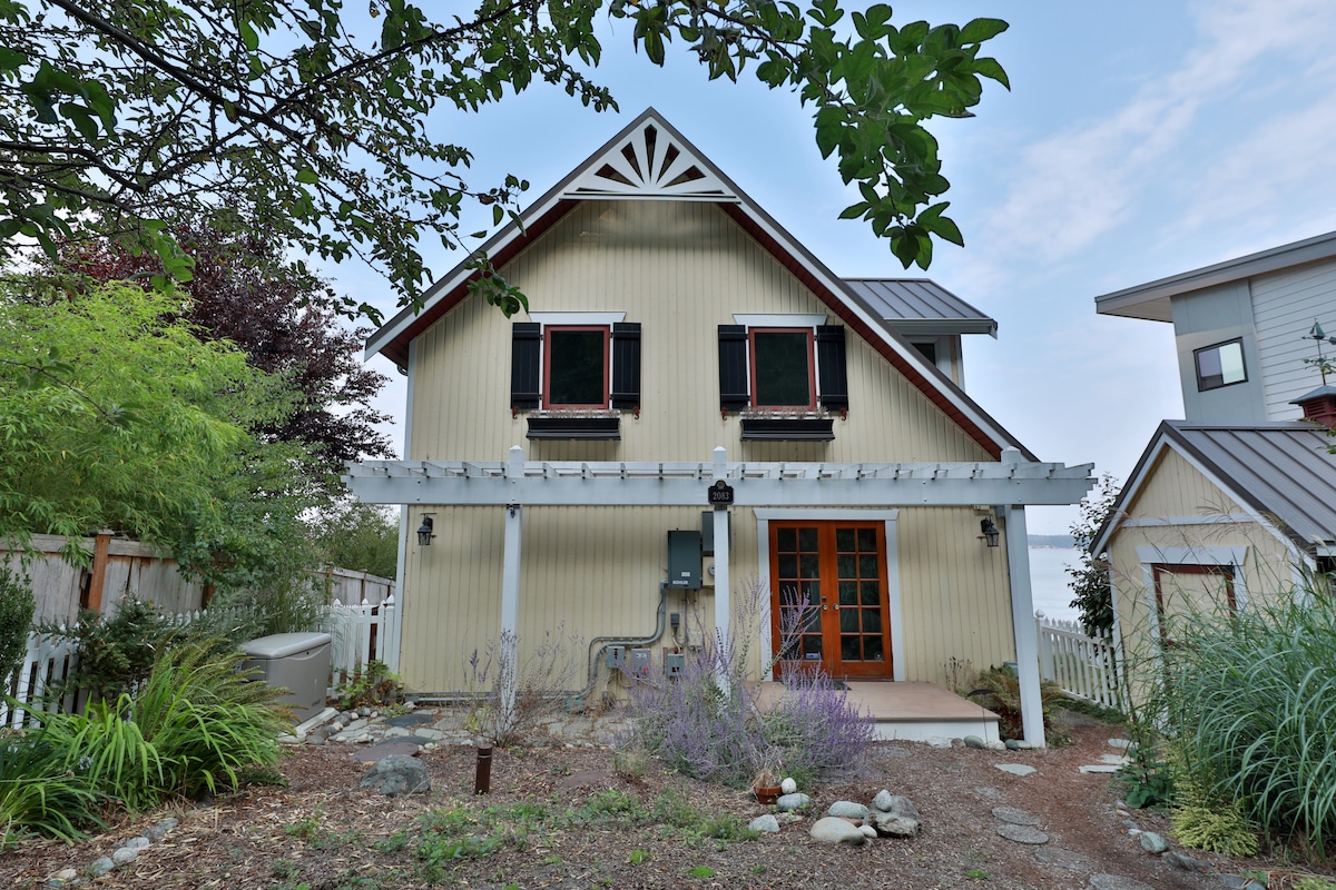 Փախչեք դեպի մեր ջրային ֆերմա, որը գտնվում է Լենգլիից դուրս՝ գեղեցիկ Ուիդբի կղզում, որտեղ կան արծիվներ և հարթավայրային կովեր։ Մեր ընտանիքը այստեղ ապրում է 1890 թվականից, և մենք ունենք հիանալի հյուրատարածք, որը գտնվում է բարձր ափին՝ 180 աստիճանով բացվող տեսարաններով դեպի Սարատոգա նեղուցը, Բեյքեր լեռը և Հյուսիսային Կասկադներ։ 900 քառակուսի ֆուտ բաց հյուրասենյակով, բուխարիով, ամբողջական խոհանոցով, լվացքի մեքենայով/չորացնողով, 183×213 սմ մահճակալով, գերարագ ինտերնետով, 2 հեռուստացույցով, գեղեցիկ կահույքով և լողափին հեշտ հասանելիությամբ՝ սա կատարյալ հանգիստ է։