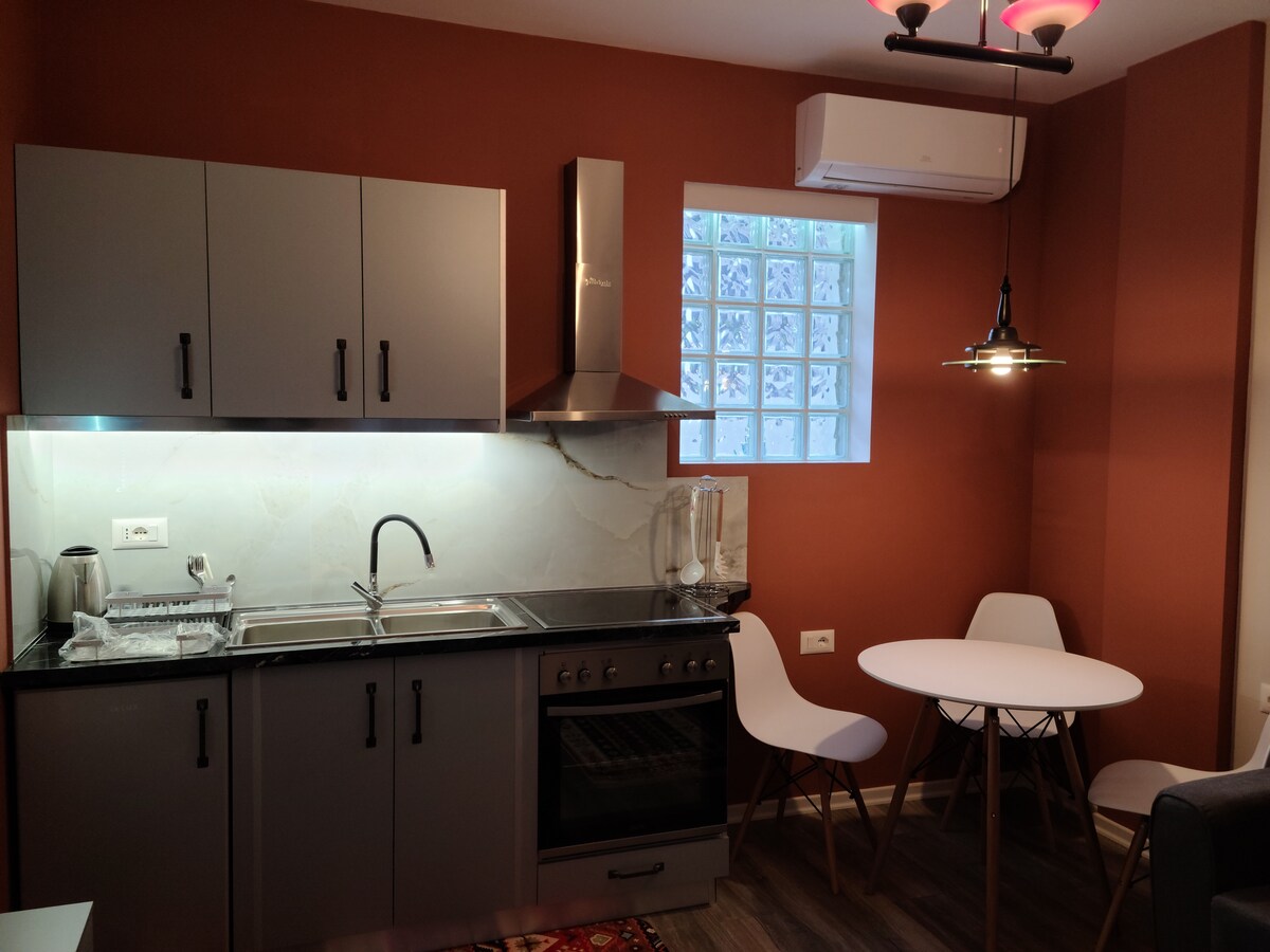 Welcome to my cozy 1-bedroom apartment located in the heart of Korçë, the cultural capital of southern Albania! Whether you're here for the history, local food, or to explore the beautiful countryside, this stylish apartment offers the perfect base for your stay. The apartment features a spacious bedroom with a comfortable queen-sized bed, a modern living room with a sofa bed (perfect for additional guests), and a fully equipped kitchen to make you feel at home.