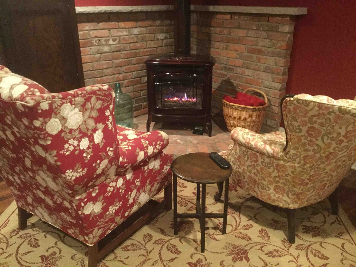 Cozy guest cottage with indoor fireplace