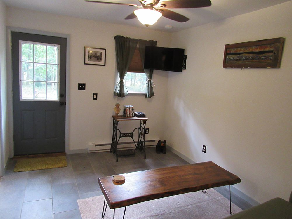 Welcome! This warm, cozy light-filled unit awaits. This unit has its own private entrance, which leads to a light and spacious living room with vaulted ceilings & skylight windows. Unit includes a laundry room, full sized kitchen & bath. 1-BR W/ queen sized bed. You can’t go wrong with this unit. Beautiful sunrises and sunsets, minutes from the Delaware Water Gap with miles of trails. Close to the Pocono Mountains. Come stay and relax in this tranquil unit that will make you feel right at home.