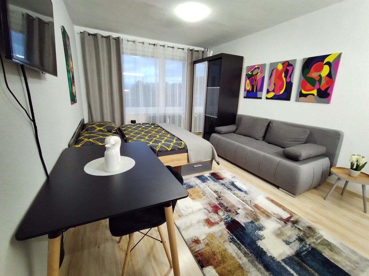 Բարի գալուստ իմ բնակարան, որը գտնվում է Liptovský Mikuláš - ի կենտրոնի մոտակայքում ։ Այն ժամանակակից է և ֆունկցիոնալ կահավորված, գերակշռում է ֆրանսիական պատուհանով և դիմացի այգով ։ Ձեր կայանատեղին անմիջապես հարևանությամբ է ։ Բնակարանը կահավորված է մեծ երկտեղանի մահճակալով և երկու ծալվող աթոռով ։ Յուրահատուկ գտնվելու վայրը ՝ 250 մ Քաուֆլանդ 150 մ լեռնադահուկային երեկույթ և երեկոյան դահուկավազք - Jasná 900 մ լեռնադահուկային ավտոբուսի ցերեկային դահուկավազք - Jasná 900 մ քաղաքի կենտրոնում 15 րոպե մեքենայով լեռնադահուկային լանջին Jasná, ski Opalisko 15 րոպե մեքենայով Lipt - ով ։ Մառա 15 րոպե մեքենայով Տատրալանդիա