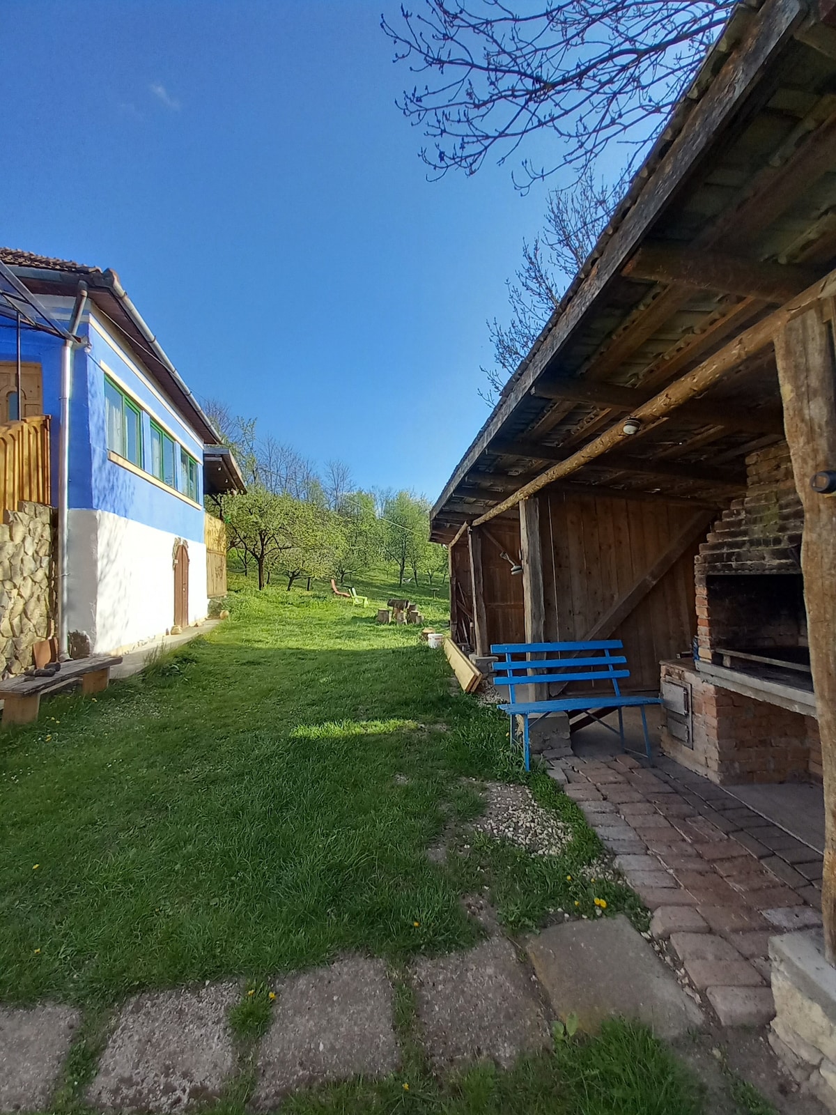It is a very welcoming family home with a rustic look. Is located in a very quiet neighborhood of houses. In the backyard have 2 parking places and garden gazebo with barbeque. Near is a non stop program market and 200 meter is restaurant. Wi-fi whole in all the house. Welcom drink is home make plums spirits.