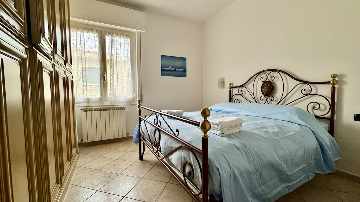 Երեք սենյականոց բնակարան, որը նայում է ծովին: Առանձին մահճակալ: Մոտ է Սանտա Կորոնա հիվանդանոցին ։ 2 կմ մայրուղուց, կայարանից 200 մ հեռավորության վրա, լողափի մուտքից 20 մ հեռավորության վրա, պատմական կենտրոնից 700 մ հեռավորության վրա, հանրային կայանատեղի: Համատիրությանը կից պիցերիաներ, մինիմարկետ և խաղահրապարակ ։ Առանձին ջեռուցում, օդորակիչ և մոծակների ցանցեր: Բաղկացած է մեծ հյուրասենյակից ՝ բազմոց - մահճակալով, ամանալվաց մեքենայով և միկրոալիքային վառարանով, երկու ննջասենյակ ՝ մեծ պահարաններով, լոգասենյակ ՝ ցնցուղով, լոգարանով և լվացքի մեքենայով ։ Հեռուստացույց և անվճար Wi - Fi