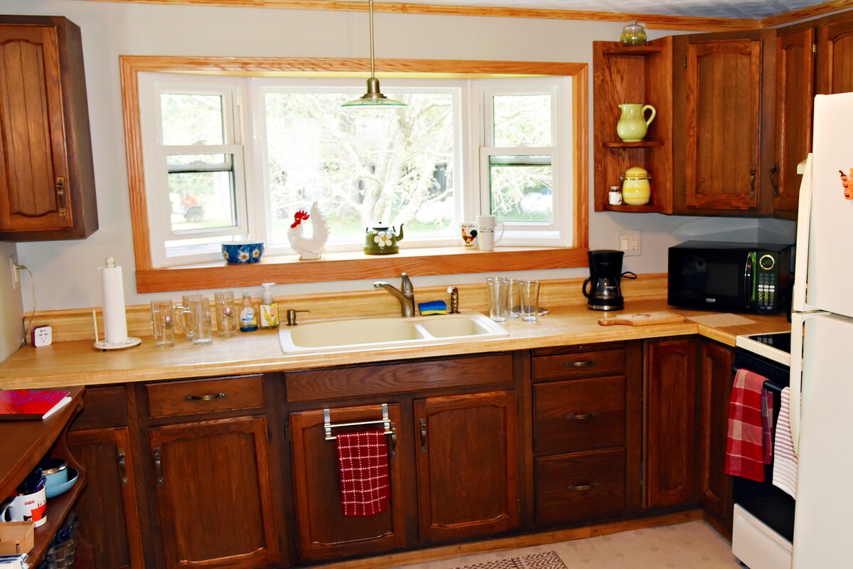 A peaceful clean home for you to enjoy!! We have a very nice size yard for camp fires and just relax in without any neighbors.Welcome to a peaceful country home in the middle of several very large ponds. Relax on the covered screened porch or the back deck for peaceful meals or just some bird watching. Not super far off the road but you feel like it. Road is pretty quiet and lots of wild life. Ponds and woods not our property so please stay in yard/ grass only