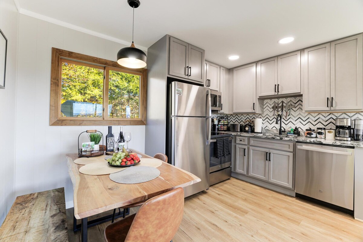 Վայելեք հանգիստ անտառում ՝ այս նոր վերանորոգված տնակում ։ Վայելեք խաղաղ և անկաշկանդ հանգիստ կամ արկածներ որոնեք և ուսումնասիրեք հիանալի բացօթյա հանգիստը ։ Գեղեցիկ լեռնային տեսարան ։ Բացօթյա մանղալ և լավ կահավորված փակ խոհանոց ։ Կրակարան էլ! Բացօթյա ճաշասեղան, որը սահում է դեպի շաֆլբորդ սեղան: Մեծ սահեցրեք տախտակամածից և զվարճացեք բոլոր տարիքի մարդկանց համար ։ Ավելի շատ մարդկանց համար տարածք է պետք, որը կարող է շատ մոտ լինել ։ Աչքի անցկացրեք մեր մյուս հայտարարությունը, որը կոչվում է Fresh Air Mountain Retreat ։